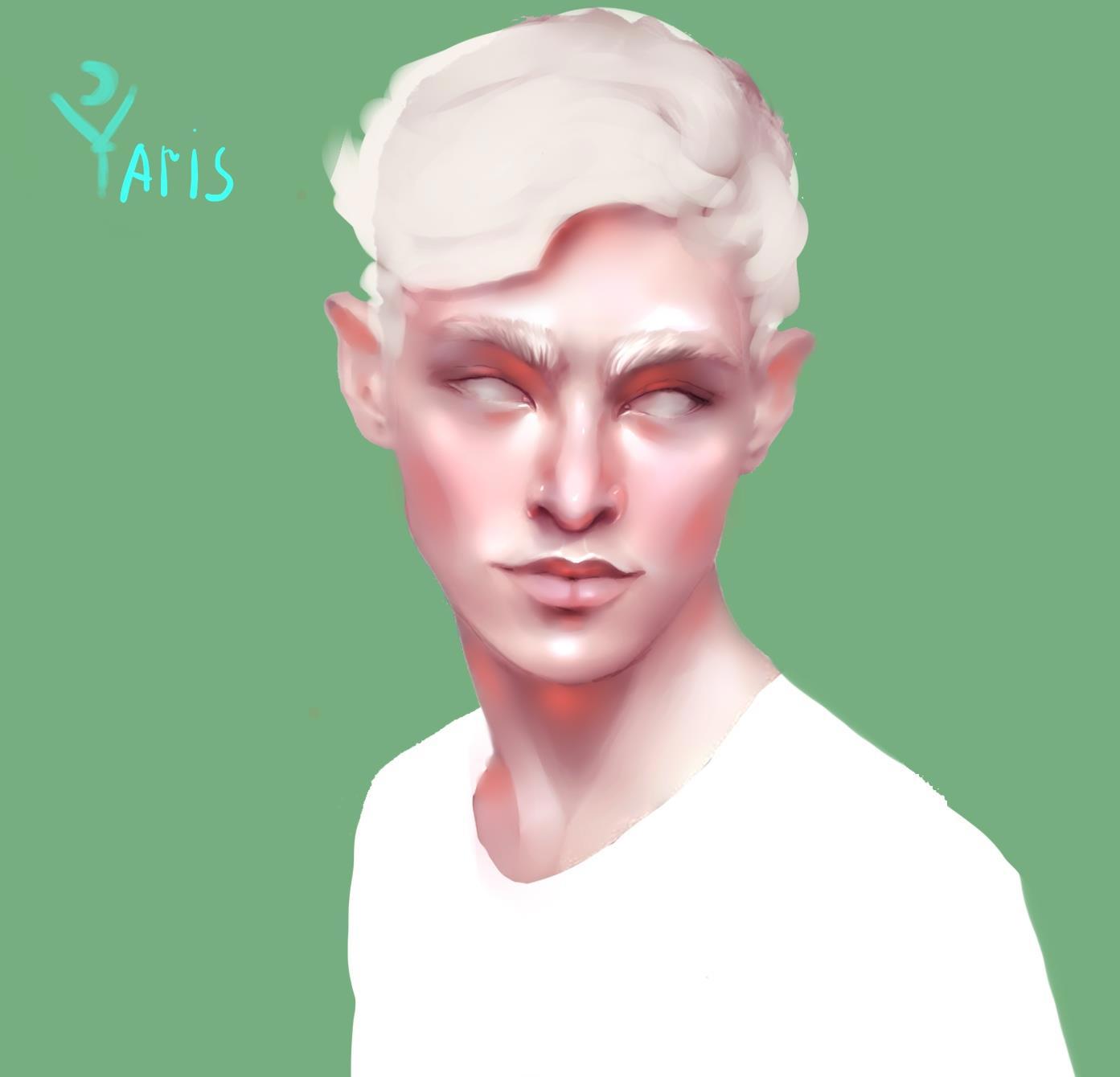 Сначала я нашла реф на позу, альбиносов и индусов. Набросала первоначальный портрет. Хранитель юноши - белая Лань. Постаралась это подчеркнуть чертами и ушками:)