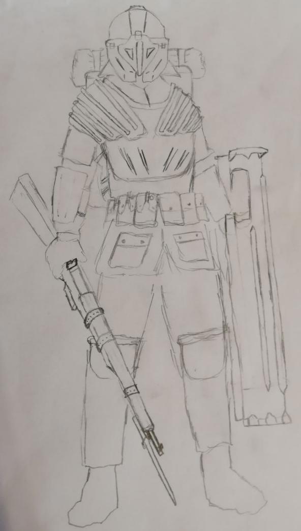 Продолжая тему развития бэка, набросал сект солдата из книги.