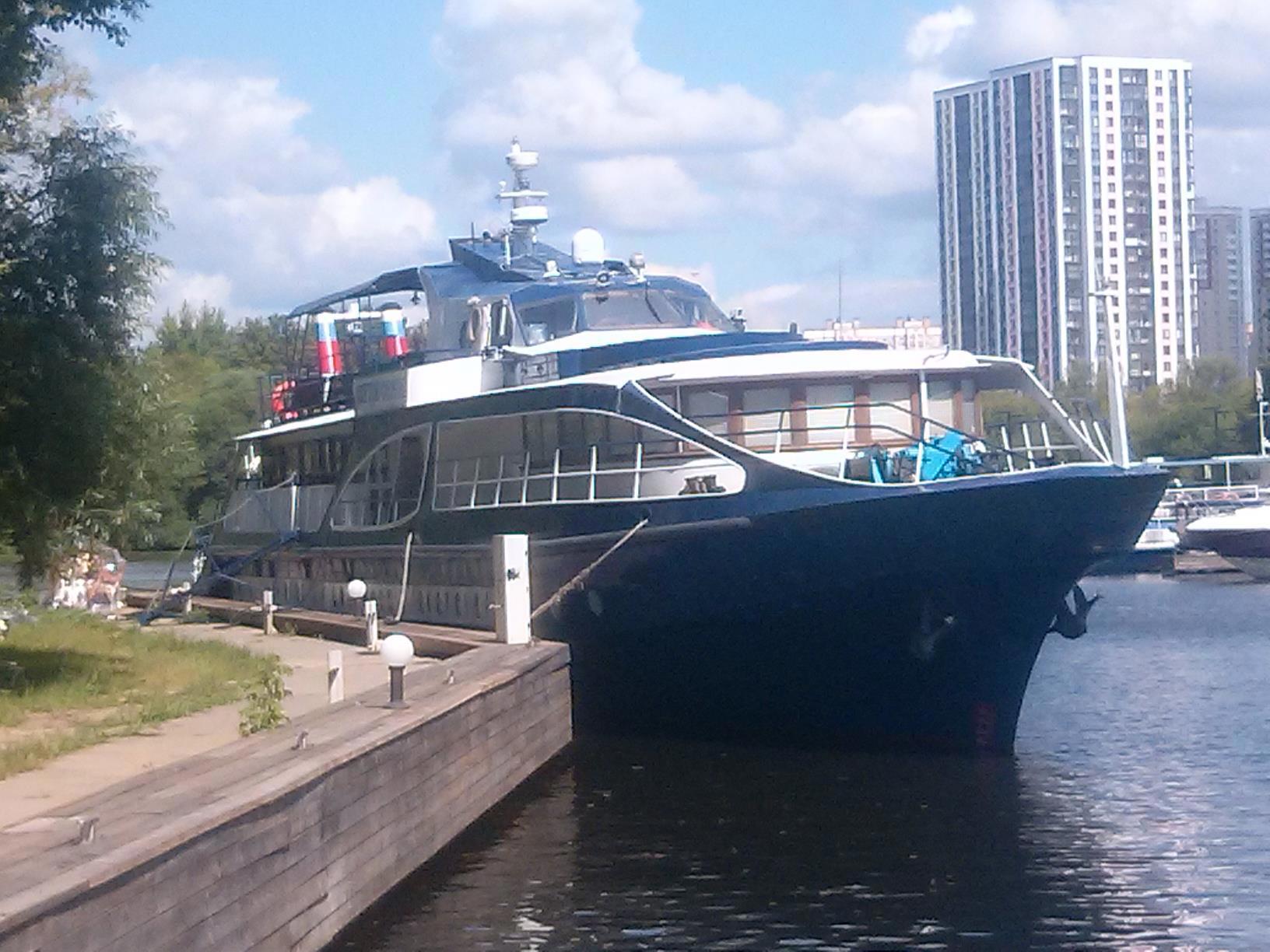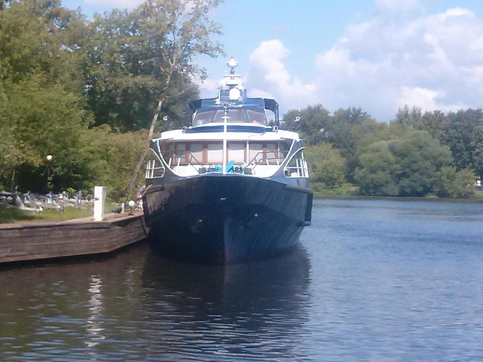 Но прежде пару слов о месте его стоянки в эти дни. Это "Маяк". Теперь здесь пристани для частных катеров и яхт, рядом громадный жилой комплекс - а раньше здесь была спортивная база. Сейчас от неё осталось только здание гостиницы рядом с парком им.Толстого. А вот до Олимпиады-80 здесь была база байдарочников. Ну и прочие стадионы разного назначения. Всё снесли. Байдарки сожгли ещё в начале 90-х - и не хулиганы а по решению суда - и я не шучу, тогда при Ельцине чёрте что в стране творилось под видом новой законности. Поэтому когда нынче молодёжь говорит что в стране беззаконие - ребята, беззакония вы не видели, сейчас вообще тишь да гладь да божья благодать по сравнению с тем, что было при "демократии".