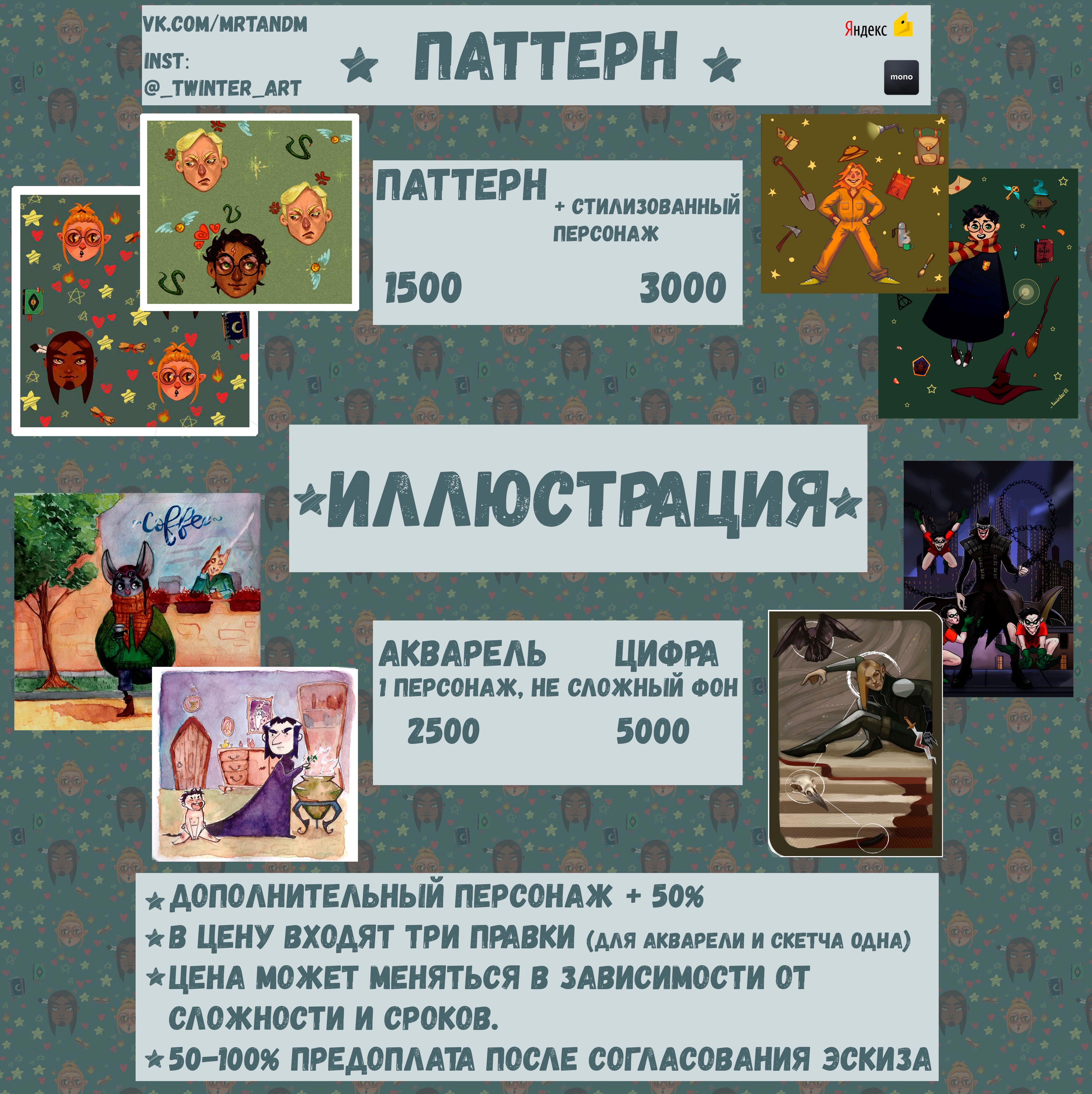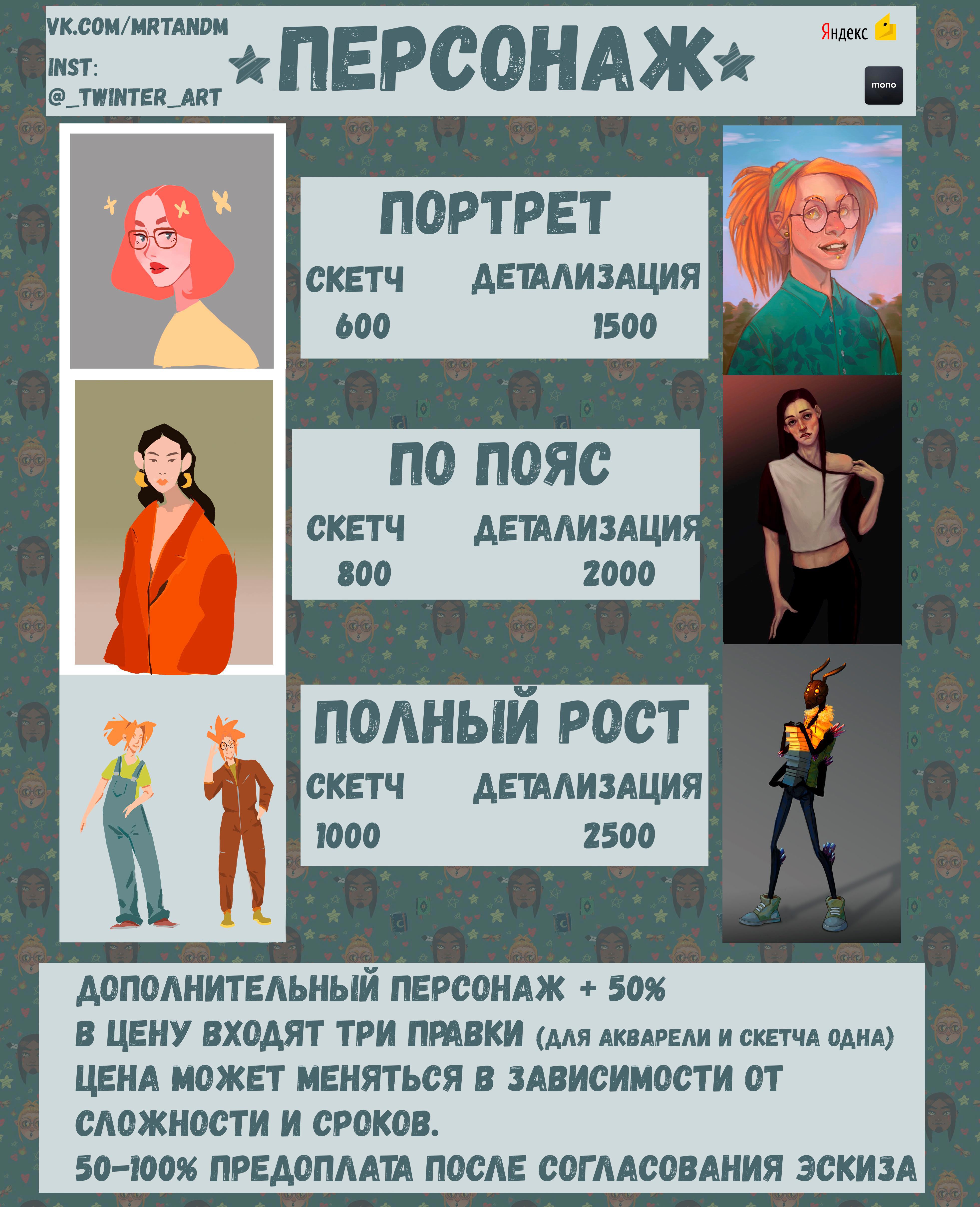 Прайс. Рисую персонажей и иллюстрации на заказ