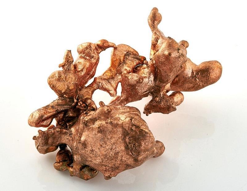 Итак, нам рассказывают, что сначала люди находили самородную медь и пытались из этих странных «камней» делать инструменты. Медь при этом не кололась, а мялась. И вот так, мол, холодной ковкой впервые были сделаны металлические инструменты. Ну, что ж – вполне логично, в принципе. Хотя всё же следует учесть, что медные самородки сплошняком землю не покрывают и вообще-то по виду разными бывают. Вот один из вариантов медного самородка: