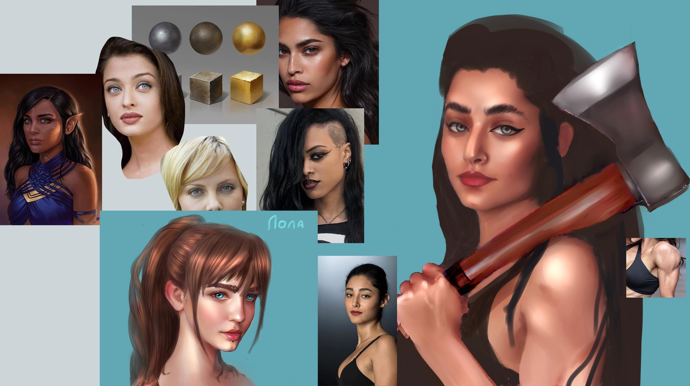 Мне она очень нравится) Пока в процессе, можно посмотреть как я работаю с референсами и материалами. У меня целая огромная коллекция текстур и материалов на пинтересте. Очень советую художникам обзавестись такой же.