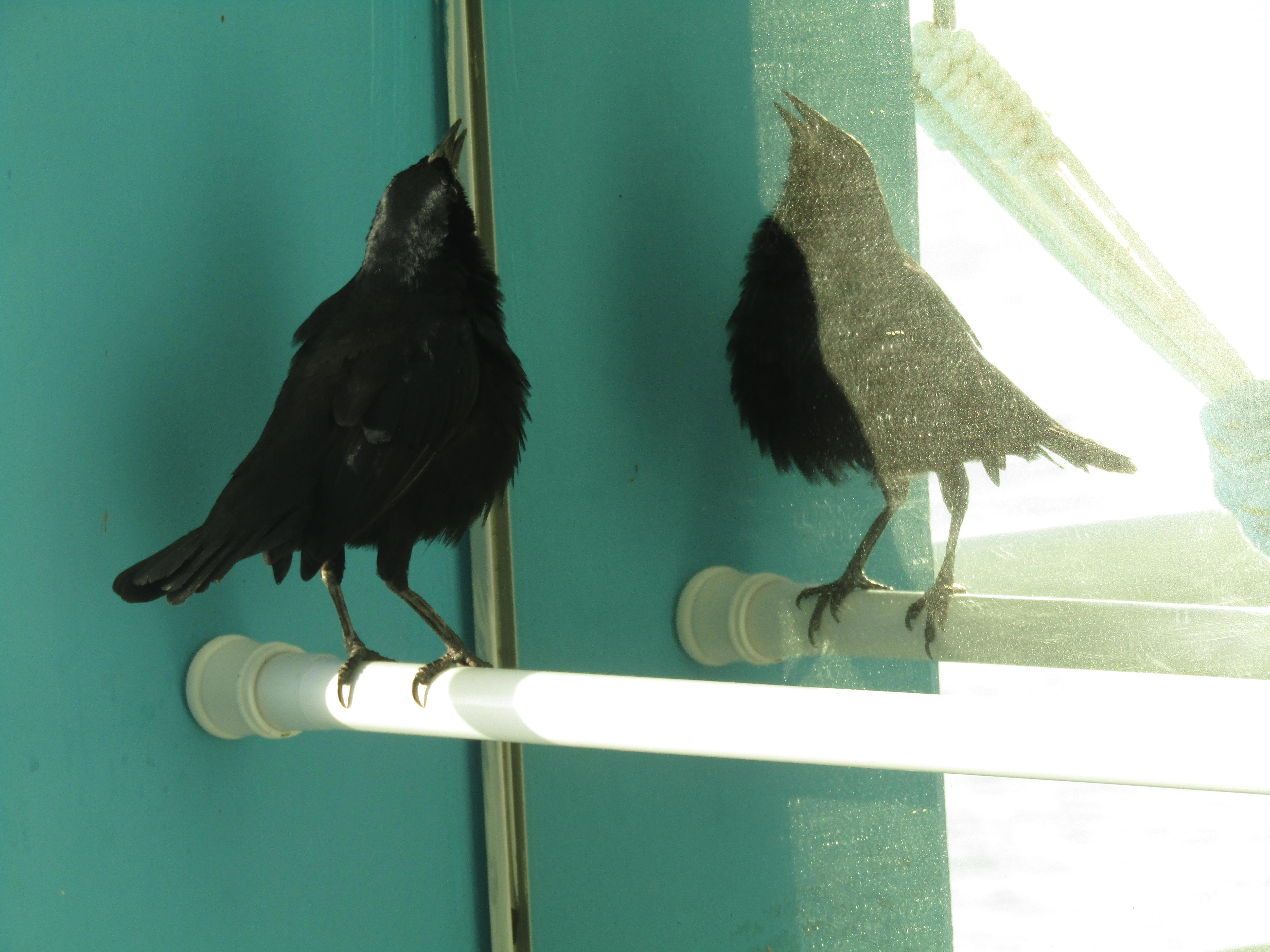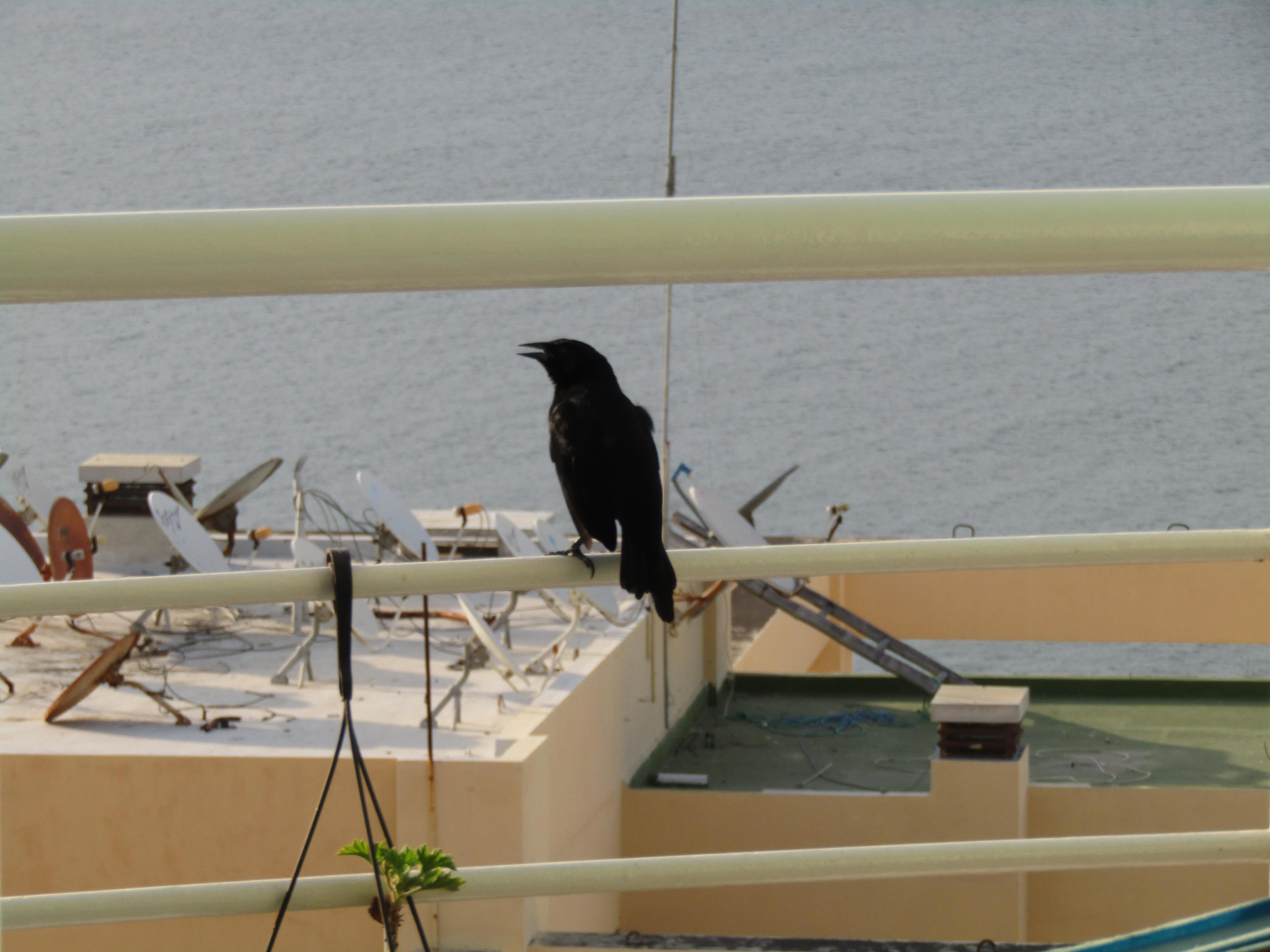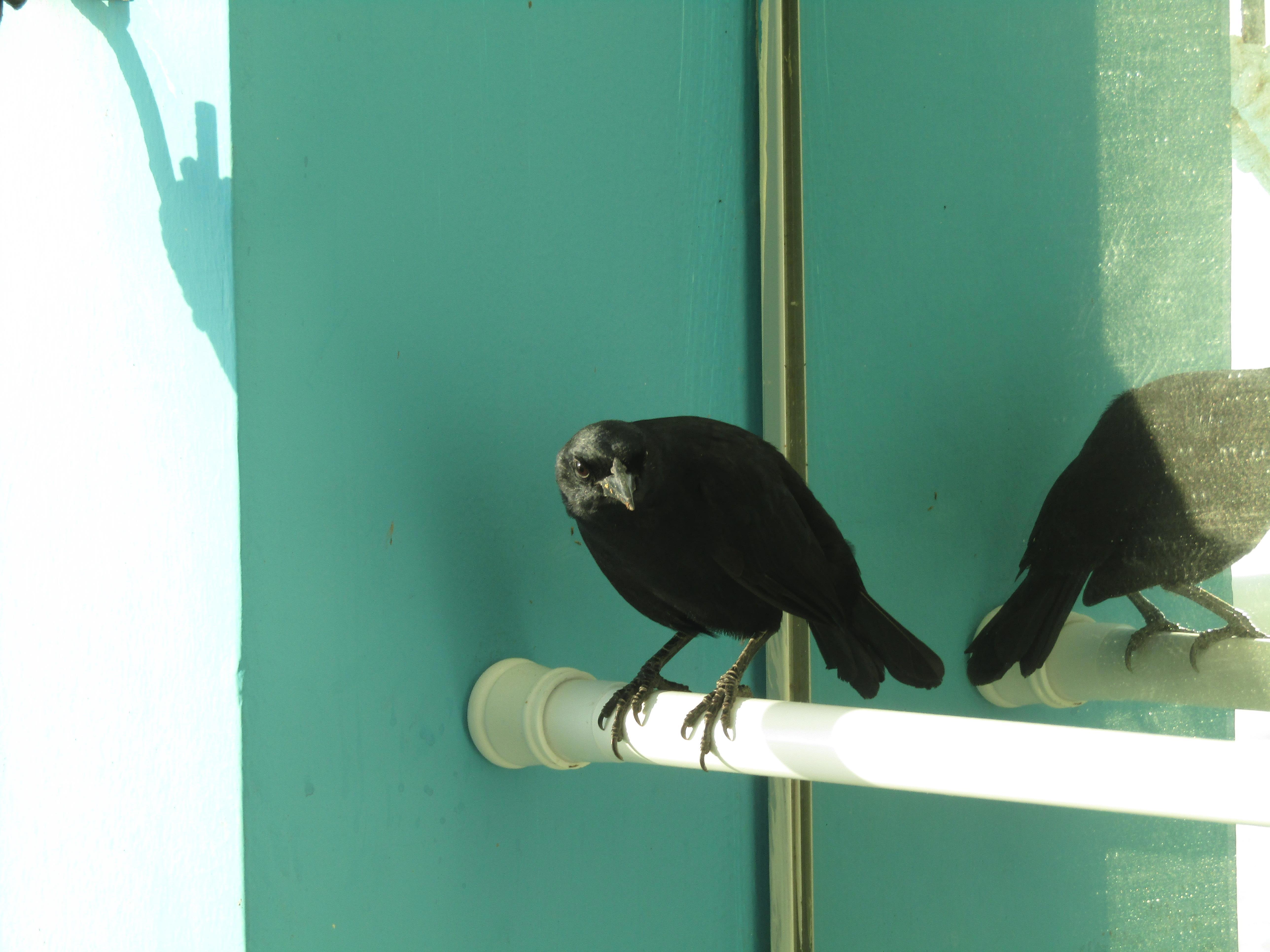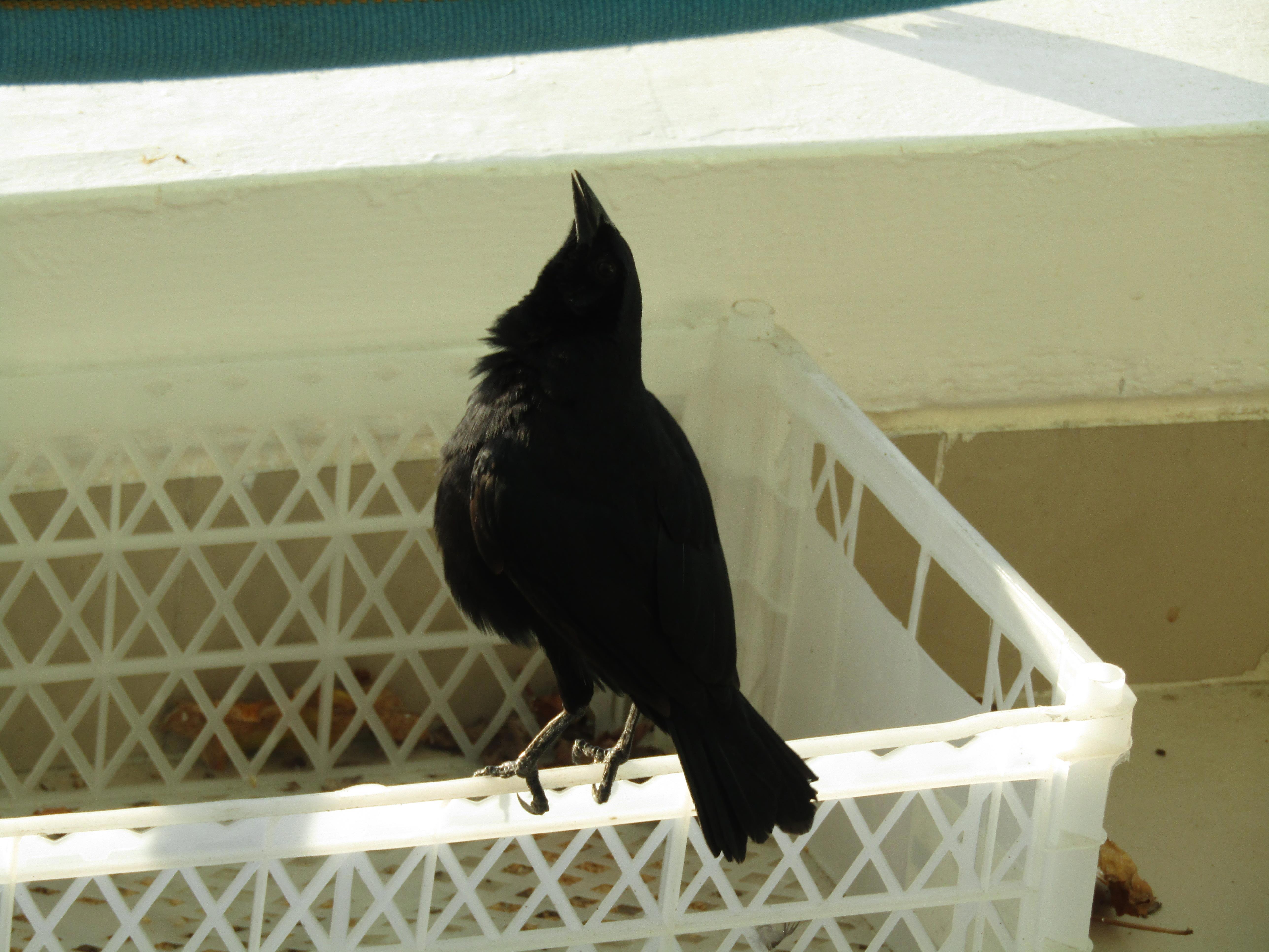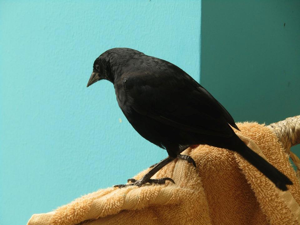Птиц обладает красивым, наименованием - Траурный трупиал - слегка отдающим некромантией. Но некромантов я очень даже люблю, кто читает "Перекресток" и "Гамбит", тот знает. ;) Ну, а если по-простому, то черный дрозд.
