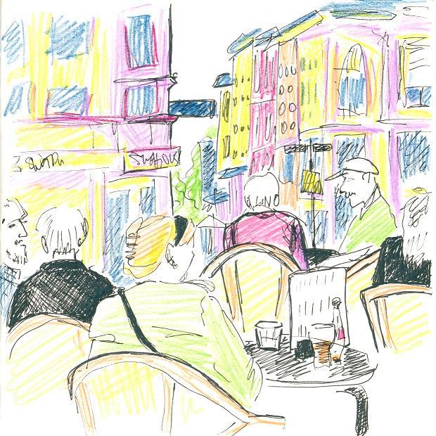 Автор: Яна ВетроваСидела я вчера в кафешеньке после экскурсии (ко мне пришли аж 4 человека, успех!)) и решила в кой-то веки просто порисовать для себя. Я не помню, когда я последний раз это делала. Прошлым летом рисовала на улице прохожих - но это тоже не совсем для себя, это скорее упражнение.