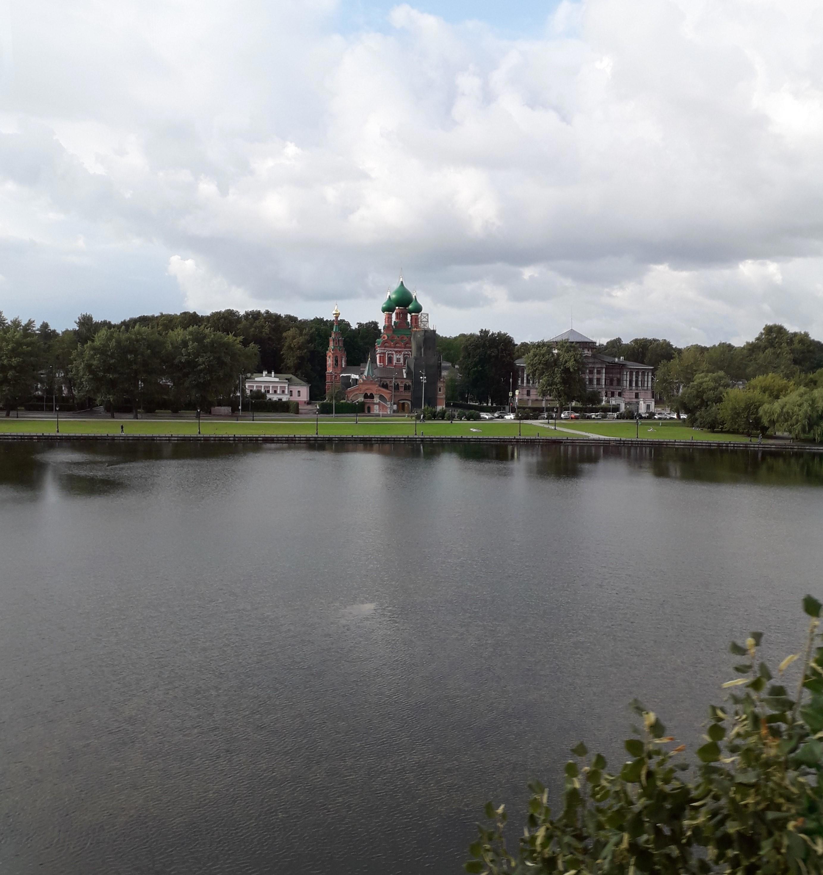 Останкинский пруд, за которым начинается большая зеленая зона - Останкинский парк