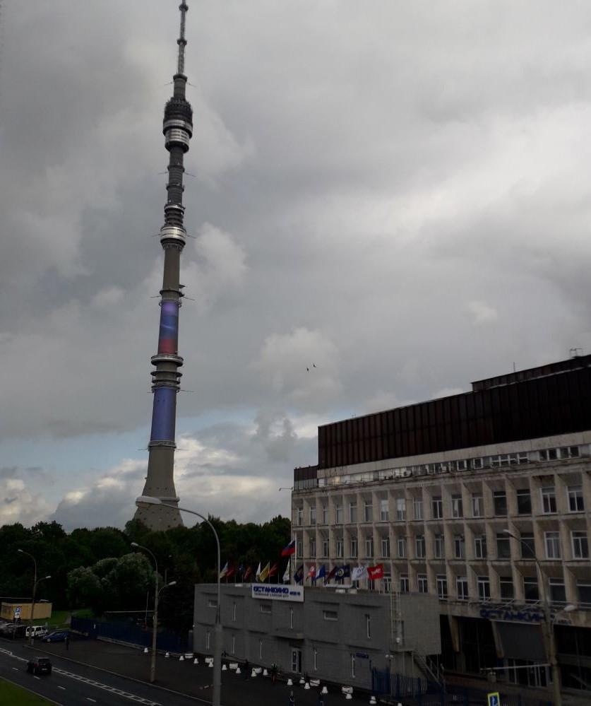 А это здание узнаете? Телецентр «Останкино», тот самый знаменитый адрес «улица Академика Королева, 12». Полосатая пижама… ой! психоделическая раскраска – не просто так. Это таблица настройки для телевизора (помните, были такие заставки в советские времена?).