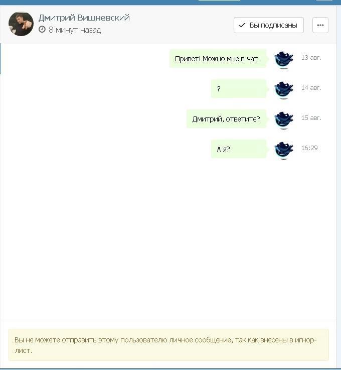 Написав, я ждал его ответа в течение 5 дней. Он не ответил и просто добавил в игнор-лист.