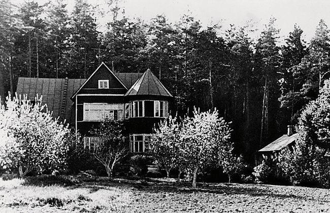 Уже обжившись в Переделкине, Пастернак признавался, что именно такие “отлогости с садами и деревянными домами с мезонинами в шведско-тирольском коттеджеподобном вкусе, замеченные на закате, в путешествии, откуда-нибудь из окна вагона, заставляли надолго высовываться до пояса, заглядываясь назад на это овеянное какой-то неземной и завидной прелестью поселенье”.