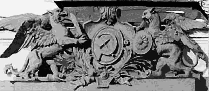 Фото из интернета, точную дату не скажу, но кто считает, что на Мариинке в советский период полностью снесли грифонов с символикой дома Романовых, мягко говоря, не прав. Они там были, только вместо герба в середину вставили серп и молот. Современный барельеф сфотографирую, когда появится возможность.