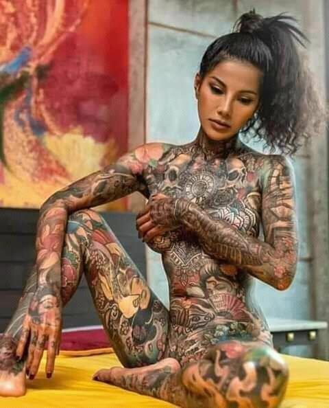 Это Фаина. Фея, котроая стала матерью Титании и выбрала себе в спутники человека. В первую брачную ночь свадебное платье Феи, сотканое из цветов, листьев и лоз, намертво впечаталось в её кожу, превратившись в татуировку.