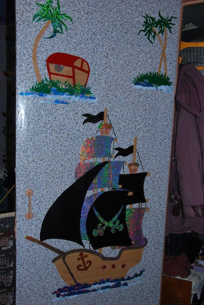 И даже пиратский корабль на старинной двери.