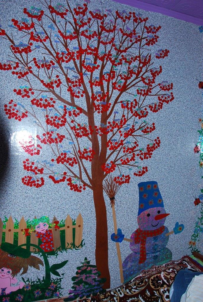 На стеночке у нас - зима с рябинкой (если бы Вы знали, КАК я мучилась с каждой ягодкой