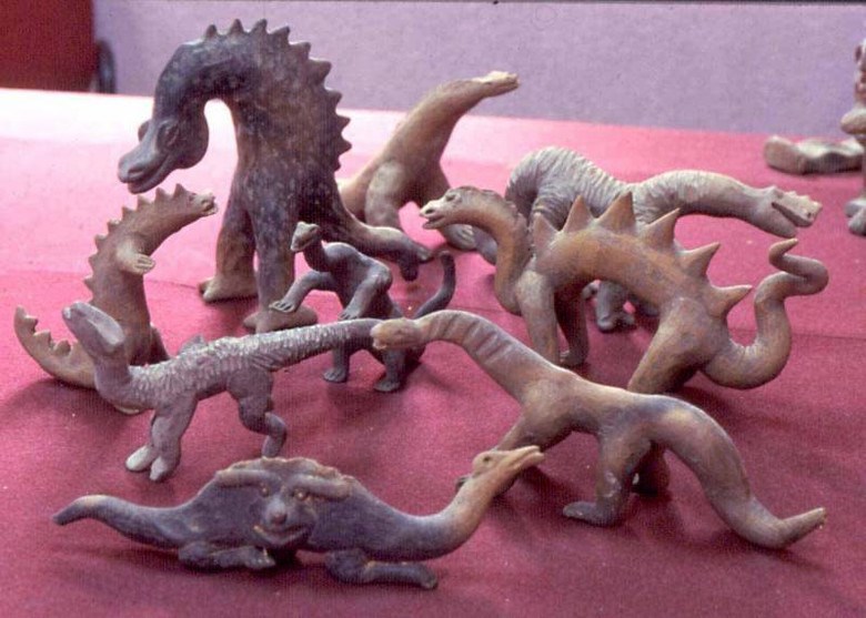 А ещё есть скульптурные изображения. Тоже странные тем, что они динозавров «рекламируют». Их знают под названием «фигурки из Акамбаро». Вот такие: