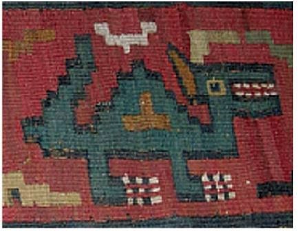 Вот. Наска! Кто ж не знает эту пустыню, где как будто проходил какой-то странный конкурс рисунков на поляне. Там, кстати не все звери нарисованы с «портретным сходством», но всё же как-то идентифицируются. Но там же нашли тряпочку возрастом 7 веков до н.э., а на ней нарисован… ой, а кто это? Нафантазировали?