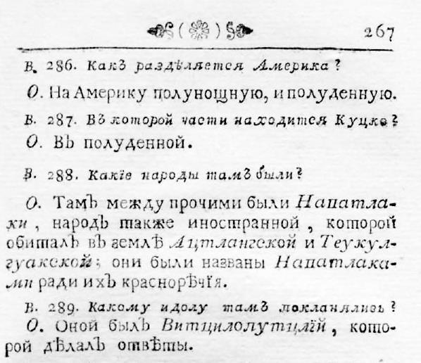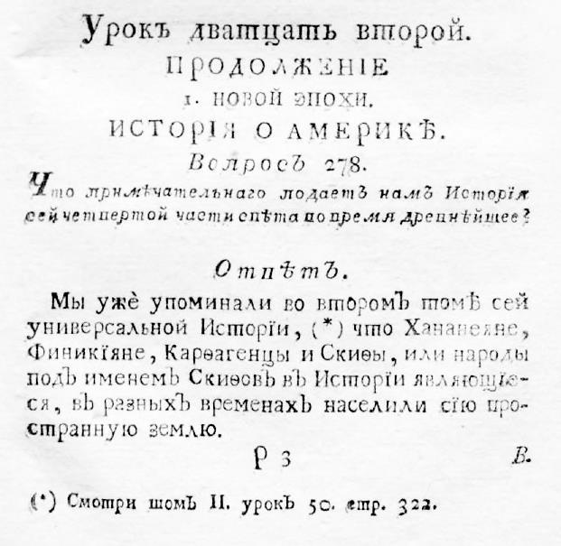 То есть пишет он вообще-то небрежно, выводы делает безапелляционные (не нравится мне такое), но факты всегда находит очень любопытные. И вот в одной своей статье ( https://well-p.livejournal.com/1071727.html ) он выкладывает потрясающую вещь. Это выборка из книги, которую написал некий Филипп Генрих Дильтей для поучения молодых дворян. Она была издана в типографии Московского Императорского университета в 1762 году и называлась «Первыя основания универсальной истории с сокращённою хронологиею. В пользу обучающегося российского дворянства». К «игу» это не имеет никакого отношения, что хорошо, так как мне важно сейчас показать на отвлечённом примере саму тенденцию, а не какой-то отдельный факт. Итак, читайте и ухмыляйтесь. Вот так учили батюшку поэта Пушкина и его самых просвещённых одногодков. Вот это они знали про континент Америка:
