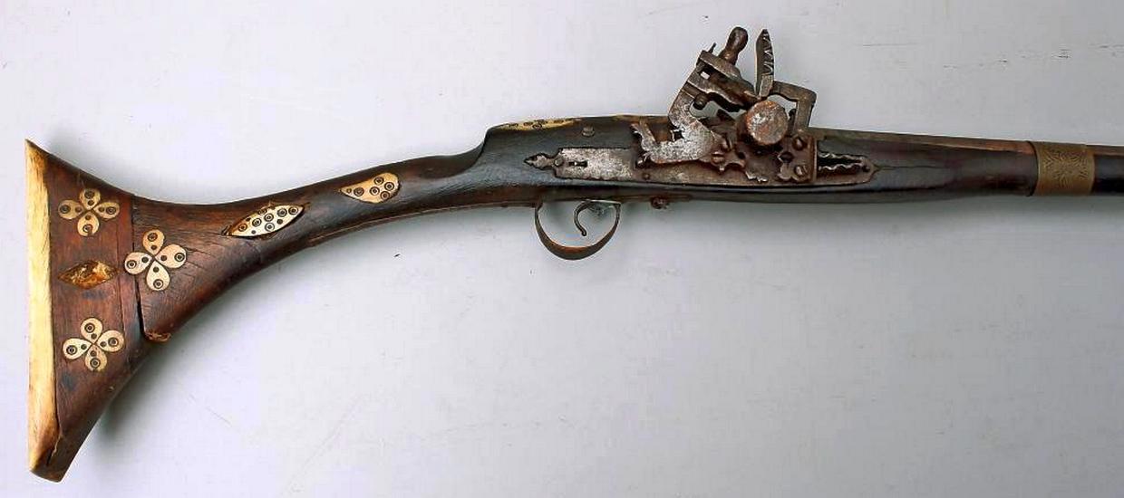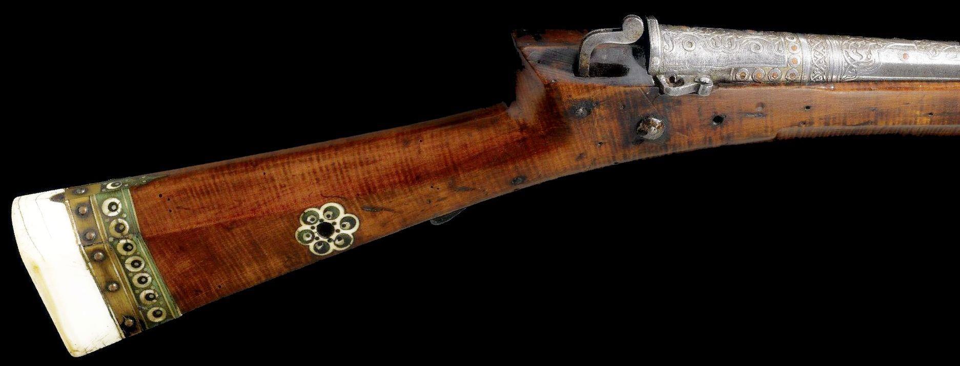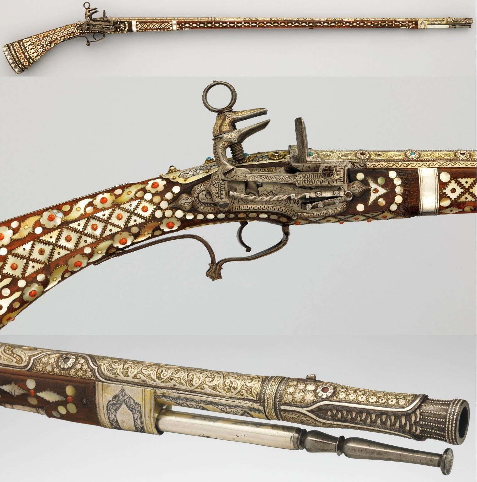 Иногда форма прикладов вполне точно копирует форму ранних образцов европейского оружия. Вот этот «джезайл» в принципе ничем особо не отличается от мушкета, кроме обилия ярких украшений: