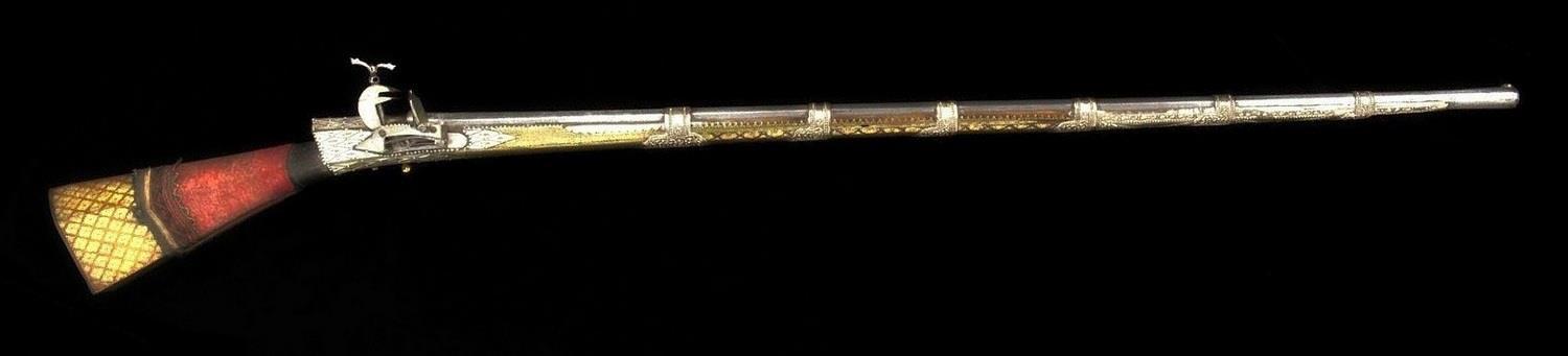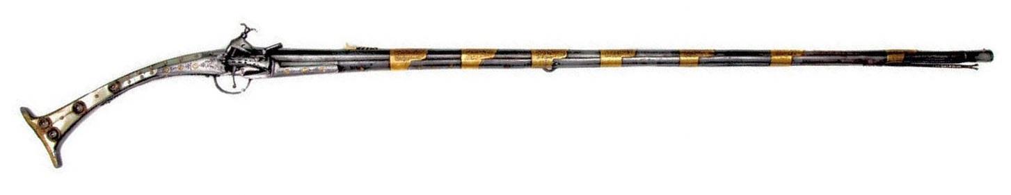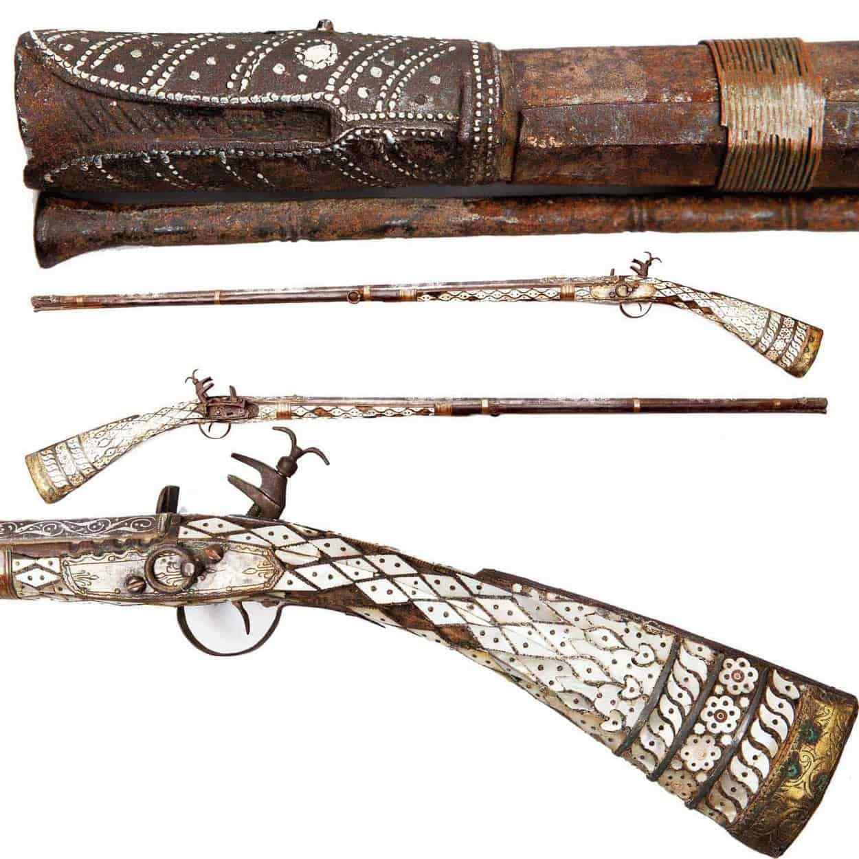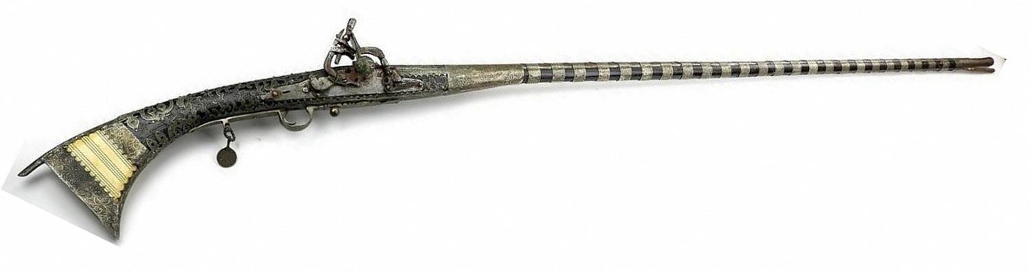 Иногда количество и качество украшений «джезайлов» просто зашкаливает. То есть до такой степени, что это уже даже не просто статусное оружие, а скорее произведение искусства. Как, например, вот такое балканское ружьё 18 века с одного аукциона: