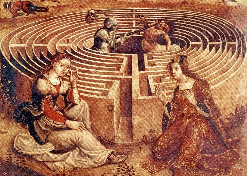 Нужно заметить, что лабиринты в церквях не только в Шартре есть. Ещё они есть в Павии, Пьячнце, Амьене, Реймсе, Сент-Омере, Риме... не обижайтесь, если кого пропустил. Даже успела установиться традиция — у лабиринта «католического разлива» должно быть 11 дорожек, так как это число символизировало(ет) понятие «грех». Не все церковные лабиринты круглые. На некоторые наложили крест и они стали квадратными. Эти лабиринты выкладываются из разных материалов. Мрамора, например. То есть это богатое украшение вообще-то, а ещё иногда их декорируют сценами из Священного писания или рисуют... Тесея с Минотавром! Какое они имеют отношение к христианству - тайна, однако.