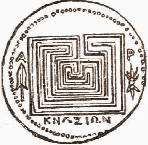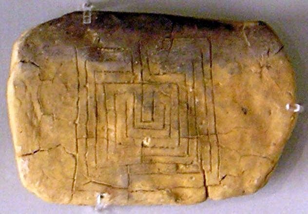 Я вот уже показал монетку с лабиринтом, но это всего лишь вариант, потому как лабиринты люди не только строили, но и активно рисовали где не попадя. Вот, например нашли при раскопках Пилоса «древнегреческую» глиняную табличку с картинкой лабиринта и датировали её 1200 годом до н.э., а уже сейчас, в 15 году, нашли очень похожий лабиринт, но на 800 лет старше и в Индии. Ну вот прикиньте — где Греция (особенно древняя) и где Индия... Греческий лабиринт тоже, кстати называют «самым древним», но на глине.