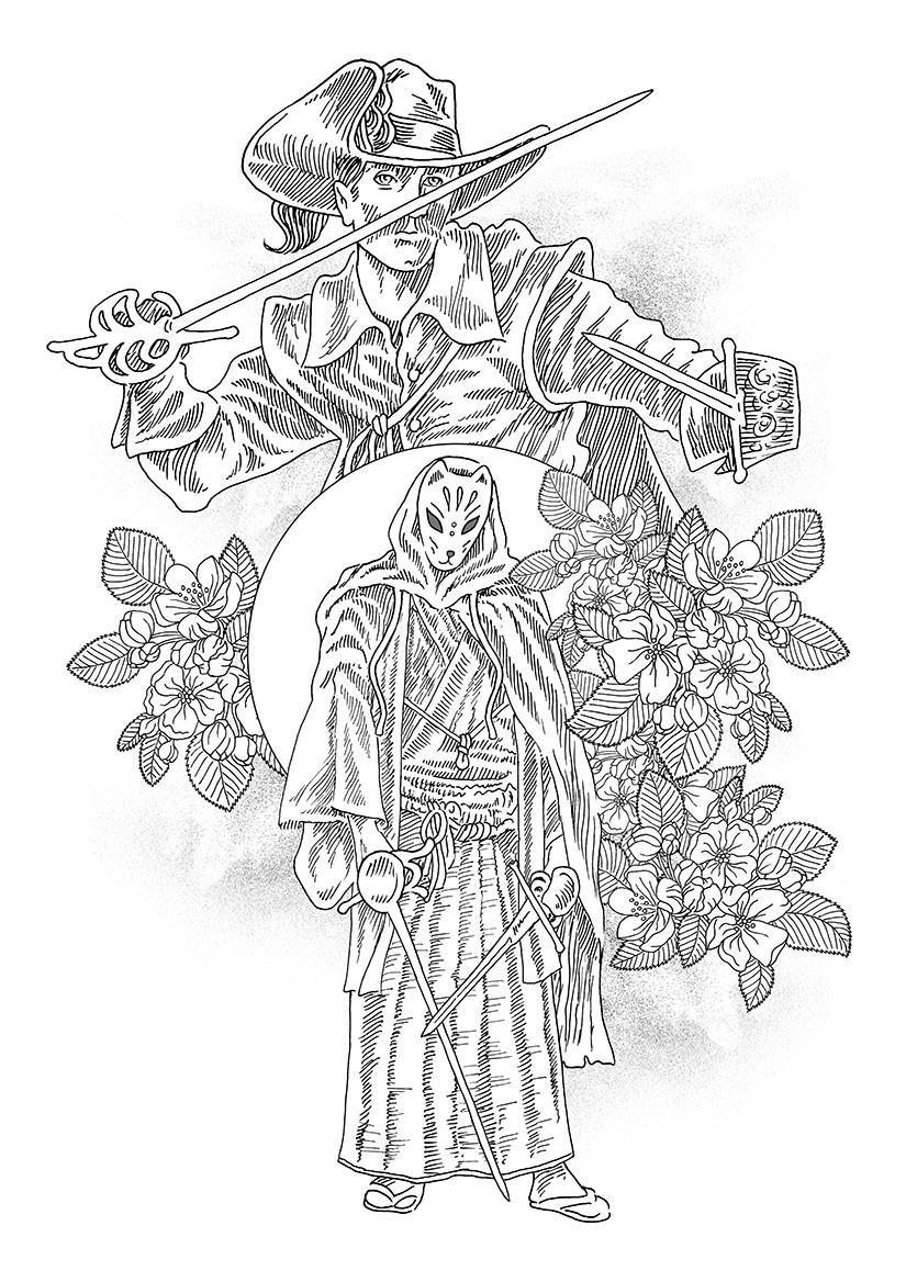 А вот с попутчиками еще интереснее. Олди не изменили фокального персонажа. История рассказана полностью членами семьи Торюмон (чуть не сказала «мужчинами» и вовремя осеклась), почти вся — Рэйденом. Но главный персонаж второго тома не принадлежит ни к семье Рэйден, ни к японской культуре. Фактически, второй том «Карпа и дракона» — книга о потерявшем лицо идальго, о грязном каонае Мигеру. Его конфликт, его противостояние как псевдохристианству Тэнси, так и псевдобуддизму Чистой Земли, его покровительственная верность юному начальнику, его маска Зорро (ой, извините, «зеро») выходят на первый план и несут на себе сюжет книги.