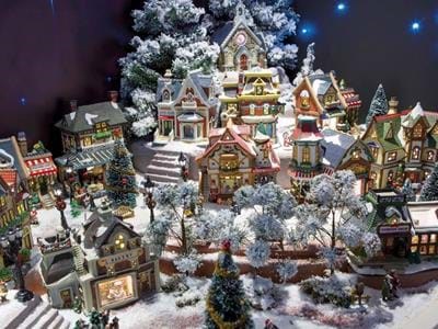 Часто для украшения используются целые «рождественнские деревни»: это маленькие домики, изображающие зимнюю деревню. В домиках есть лампочки, и когда их зажигают, кажется, будто в окошках горит свет. Выглядит вся эта красота примерно так: