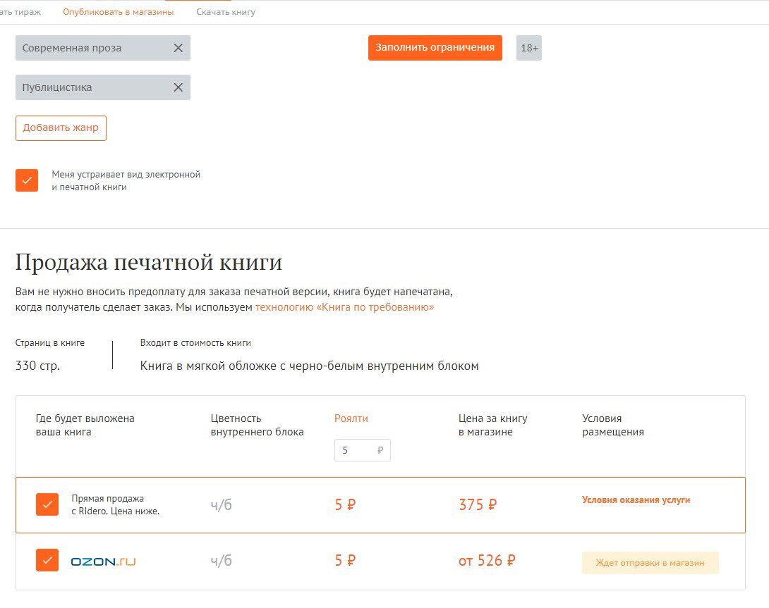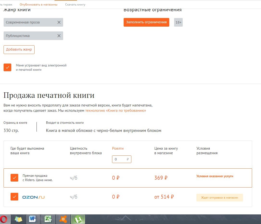 при моей прибыли 0 руб печатная книга будет стоить от 369 на Ридеро, до 514 в Озоне.