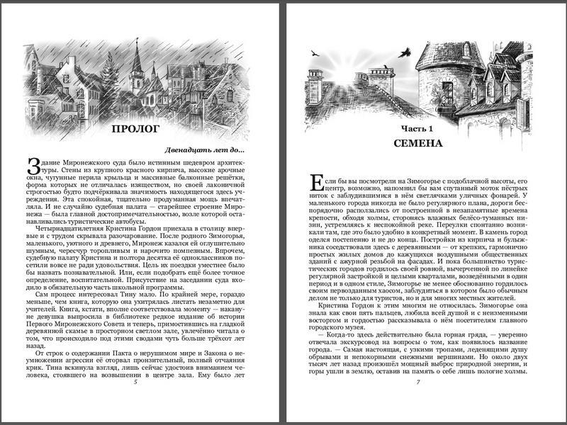 Во-вторых, внутреннее оформление от Антонины Клименковой. "Какие заставки и виньетки ты хочешь?" - спросила она. "Домики! - ответила я. - Много домиков! Больше домиков богу домиков!" В результате получилось очень атмосферно. Зимогорье как оно есть :)