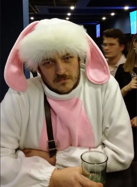 У вас бывало так, что в голове возникает образ персонажа, вы вводите его в сюжет, и только потом понимаете, что образ взят с какого-то хорошо знакомого вам человека? Точно также случилось у нас в романе с главным антагонистом, антропоморфным Зайцем Кирком. Уже после написания романа я случайно разглядывал аватарки друзей в соцсетях и внезапно понял, что всё это время использовал внешность Александра "Котобуса" Горбова . Только уши у него натуральные, а небритость примерно соответствует.