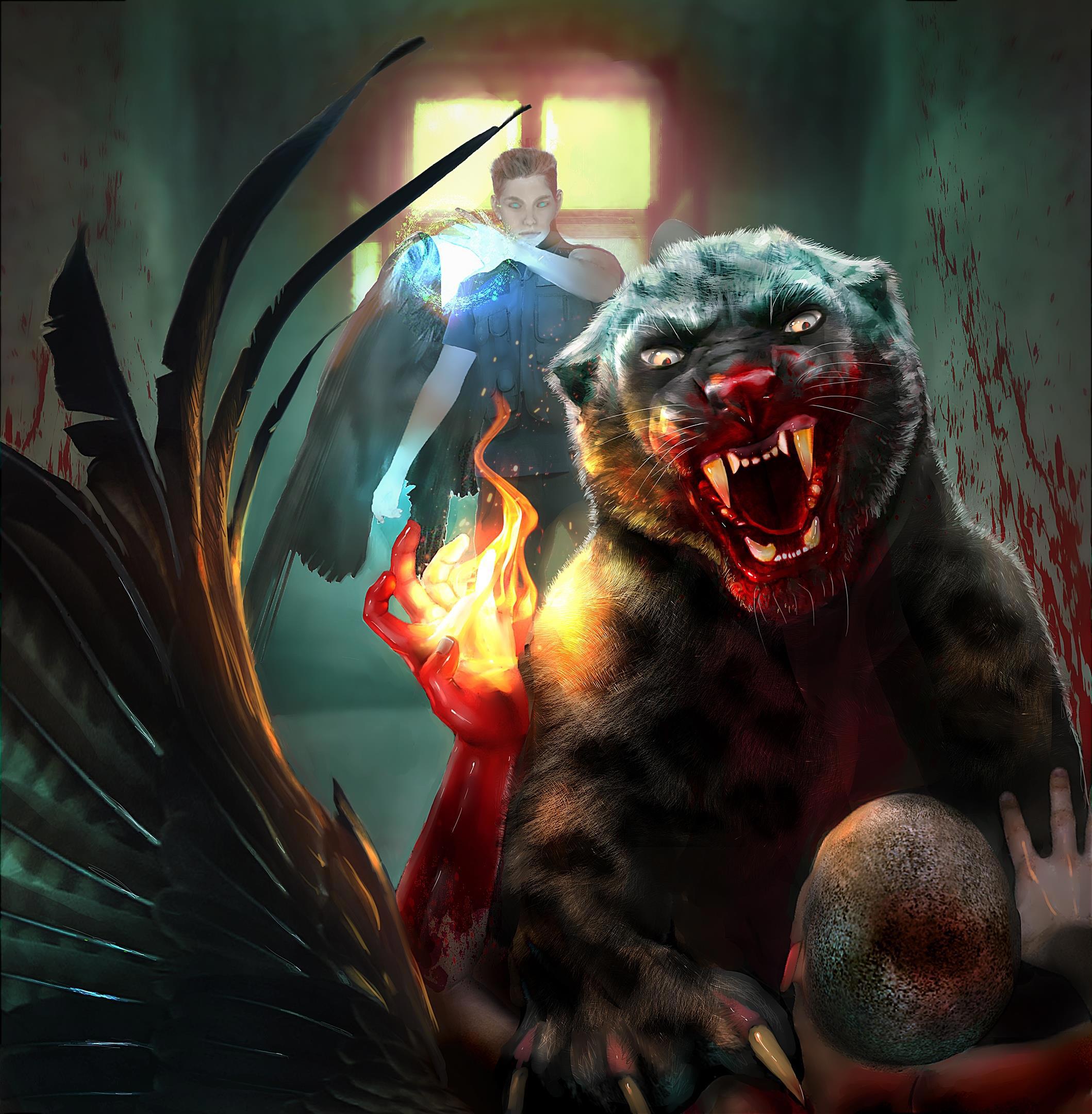 Проиллюстрировала главу Голоса Стаи и заодно показываю на примере, что могу и в кровавый экшн в рисунке.