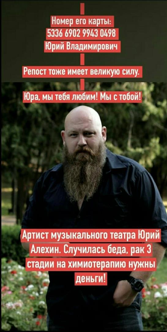 Юрка солист Ростовского музыкального театра - шикарный бас, огромный мужик с бородой! Мой однокурсник по консерватории. Силач! У него собственное силовое шоу где он рвет сковородки и подковы, гнёт шампура об кадык(не повторяйте такое сами!). а ещё он профессиональный дед мороз! Дети его обожают! Уже больше двадцати лет он радует публику, но сейчас он болен... я сам только что узнал и сразу же с ним связался, но он слаб и подробности не сказал. Попросил до утра не тревожить его. Я в шоке сижу и блин слов не нахожу.