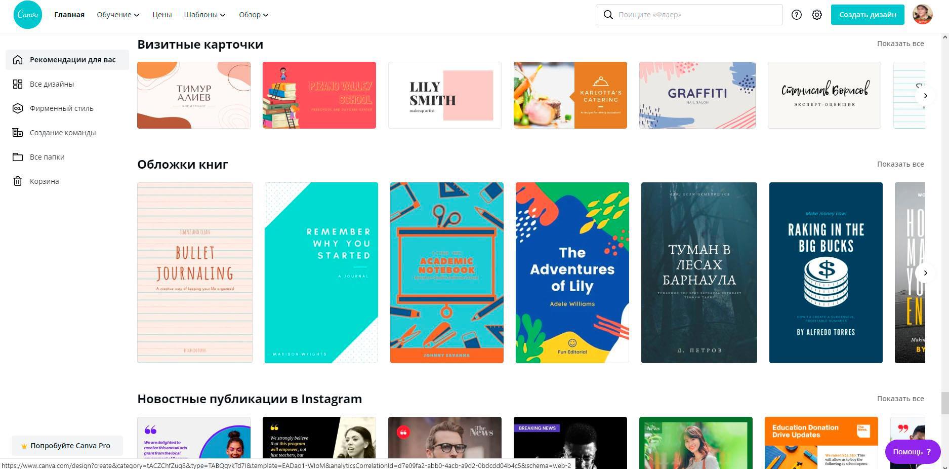 Итак, https://www.canva.com - программа имеет большую как бесплатную, так и платную библиотеку изображений, шрифтов и дизайнов.