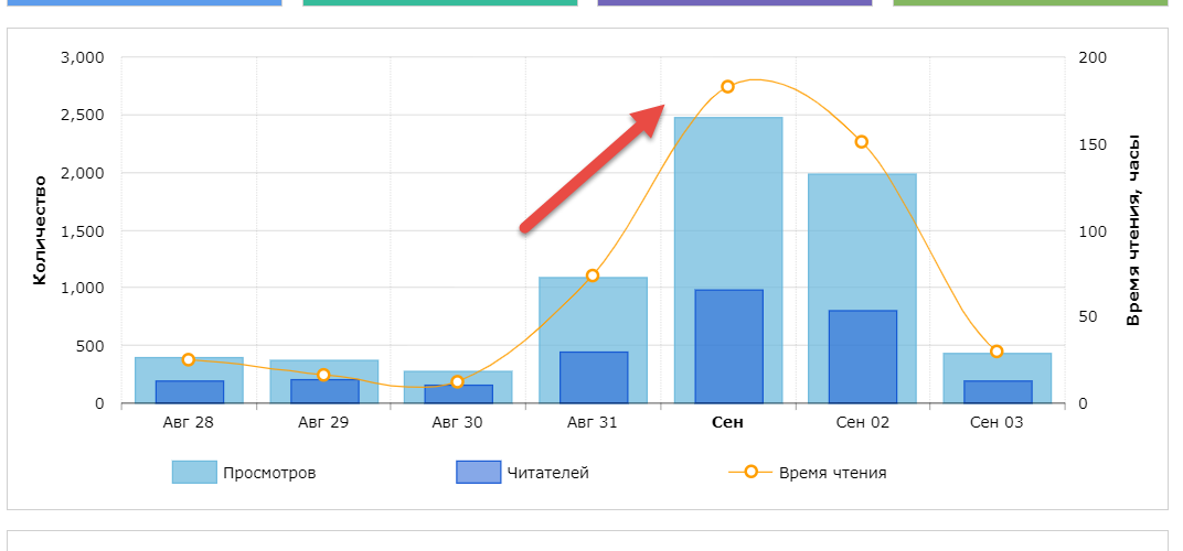 В общем, вечеров на АТ не был. Только следующим утром (1 сентября) зашёл. А там, мать честная! Блог этот несчастный больше 1000 просмотров набрал (на момент 3 сентября уже 3к просмотров). На книгу лайков бросили. Часы чтения вверх поперли. Что за магия, я не знаю.