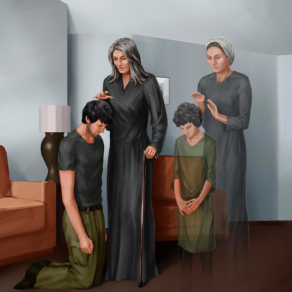 Как и предыдущий арт о Рождестве, нынешняя сцена с Благословением - не только иллюстрация сцены, но и визуализация одного из немногочисленных обрядов катаризма. И поскольку детали литургической практики выдержаны очень точно, иллюстрация может быть использована и в не художественной литературе - например, в качестве визуализации Melhorament в соответствующей статье научного словаря.