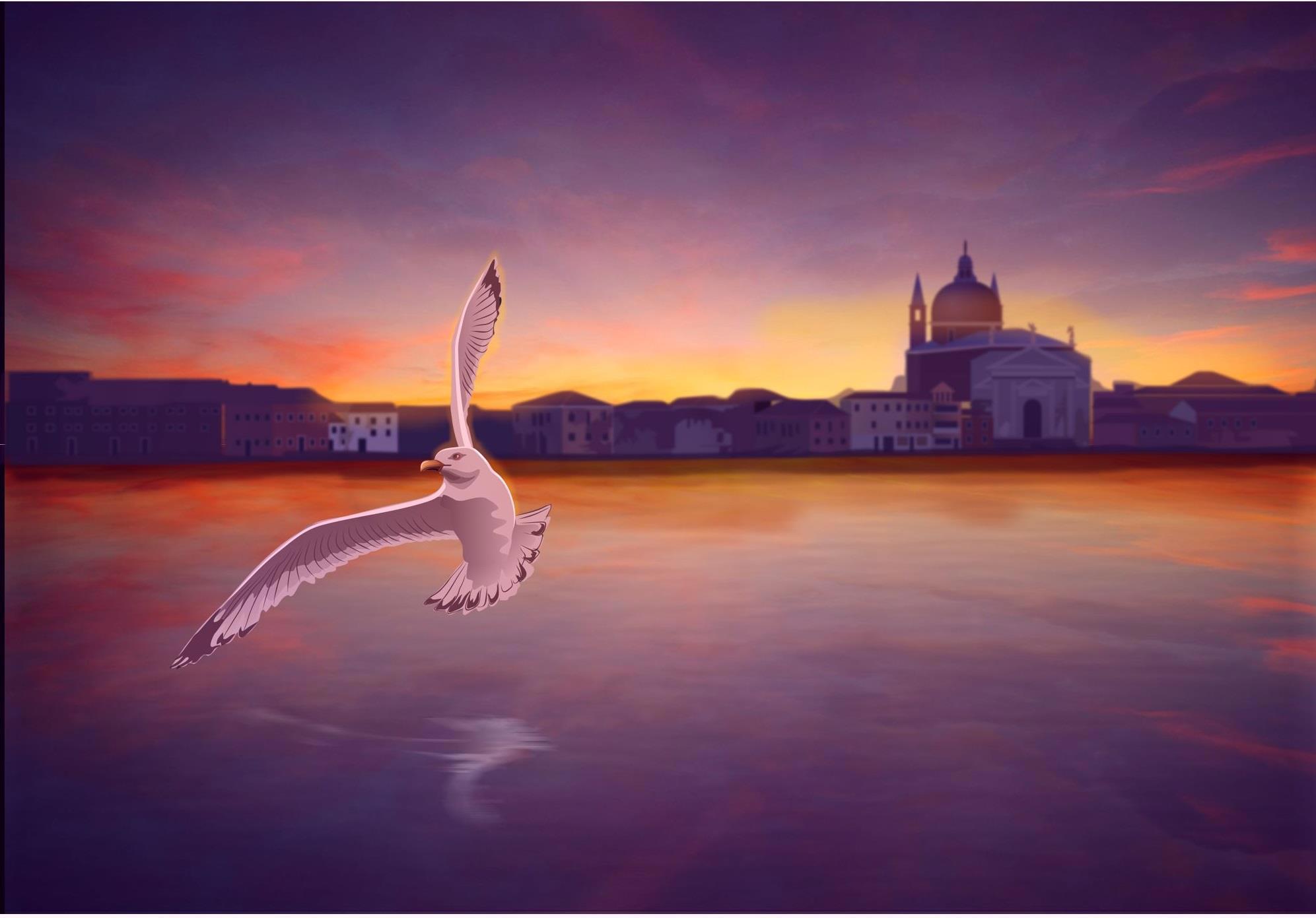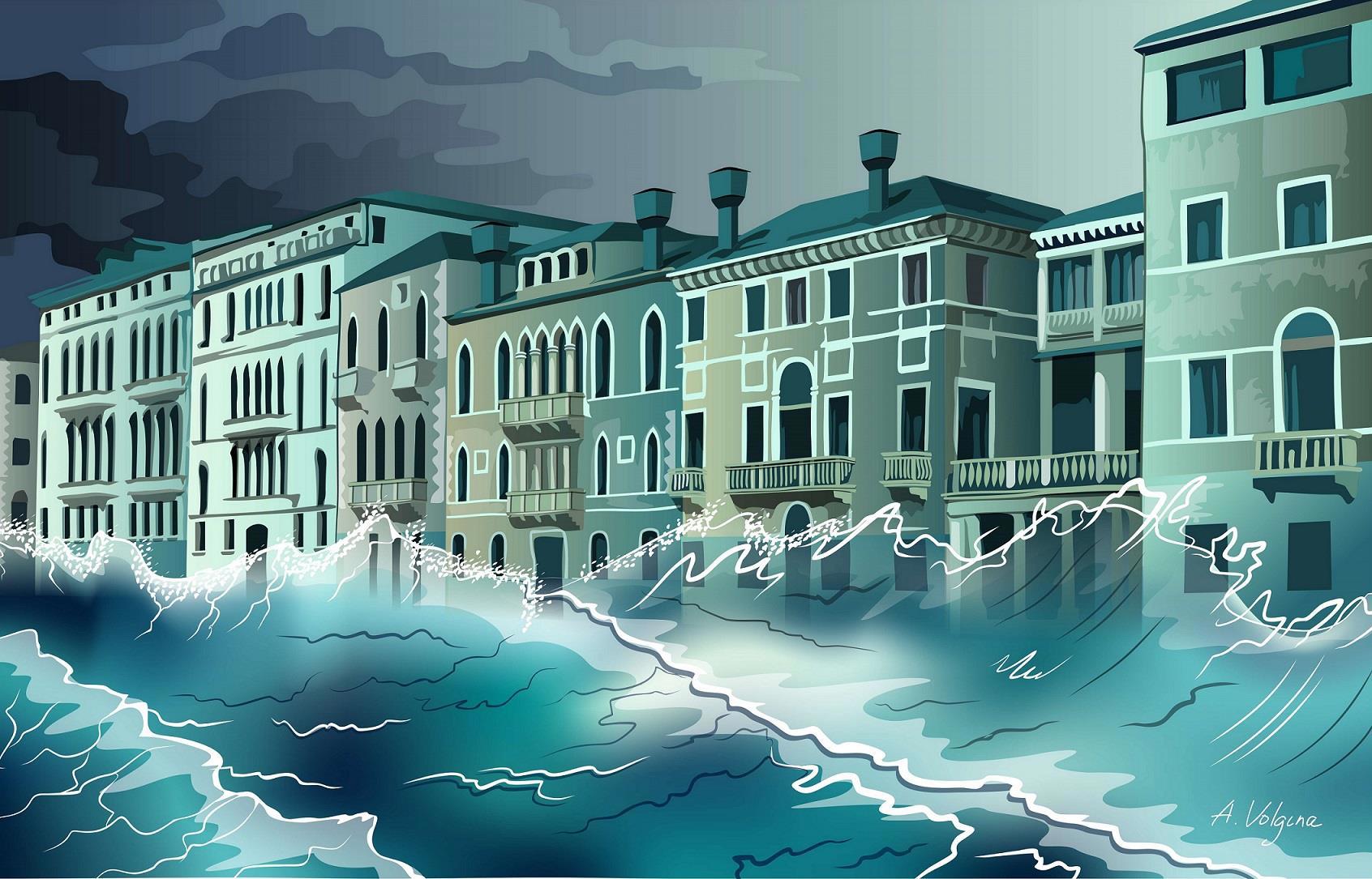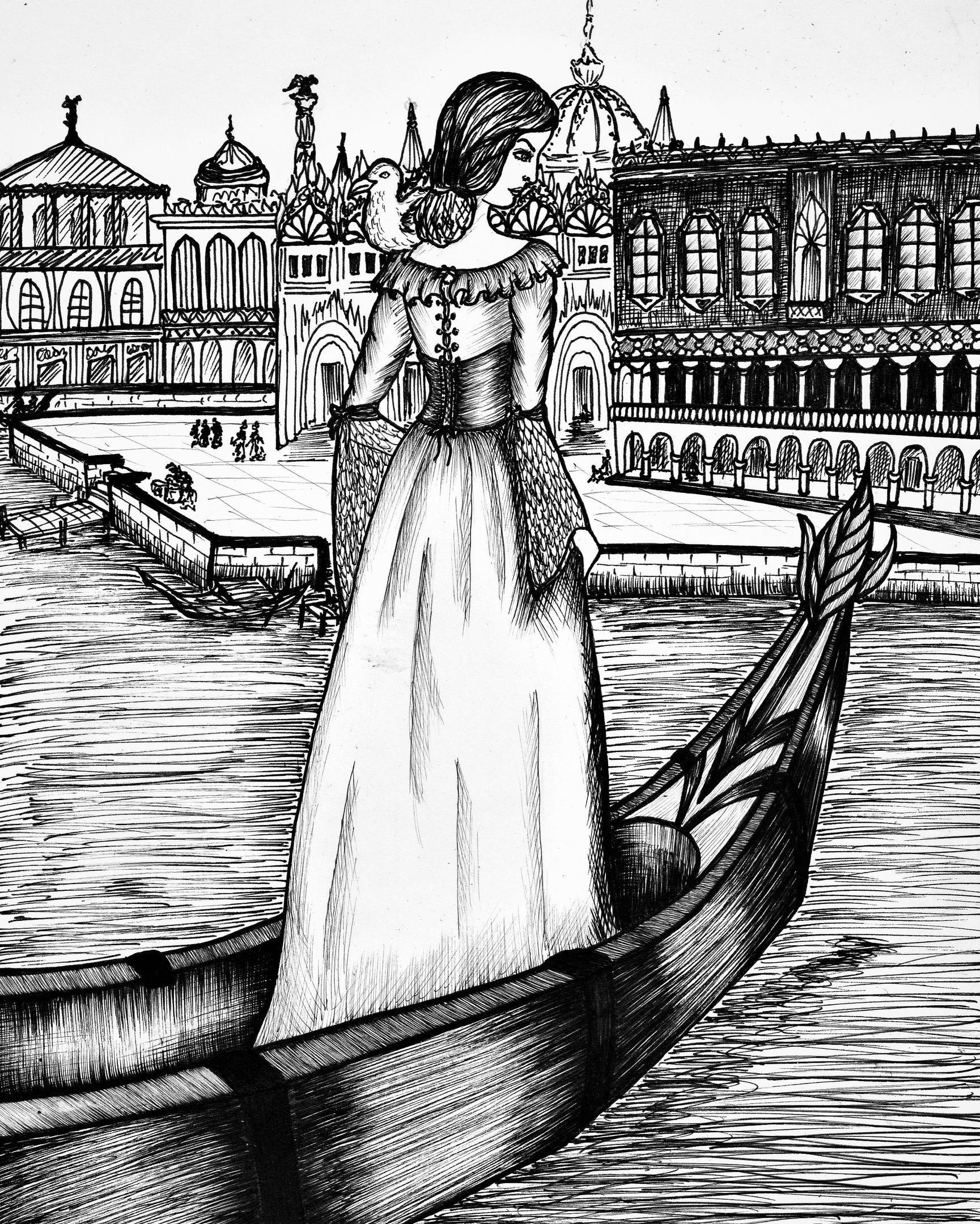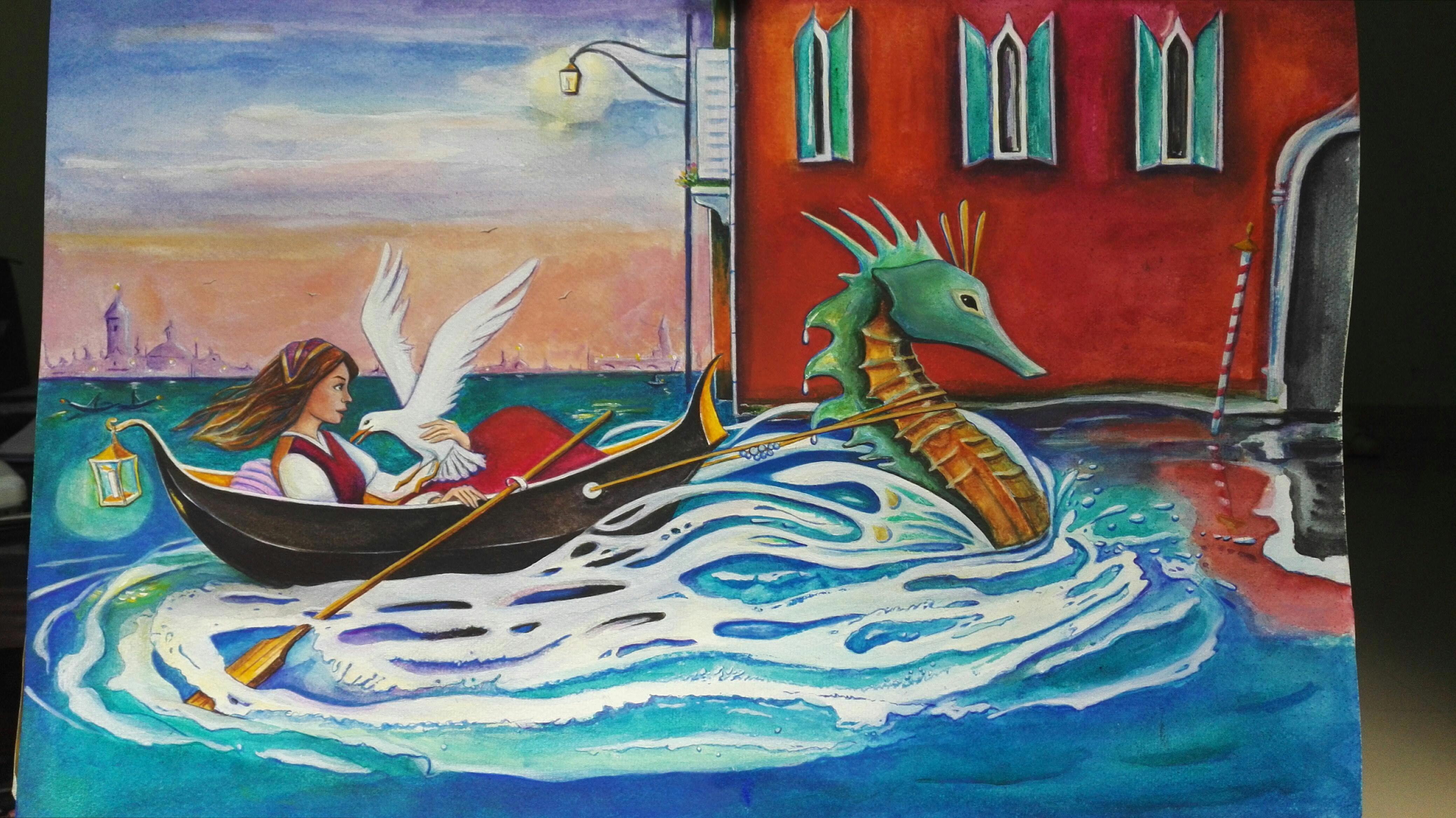 5) Строгая и графичная картина Daria Sogrina-Druc , изображающая приезд главной героини в Венетту: