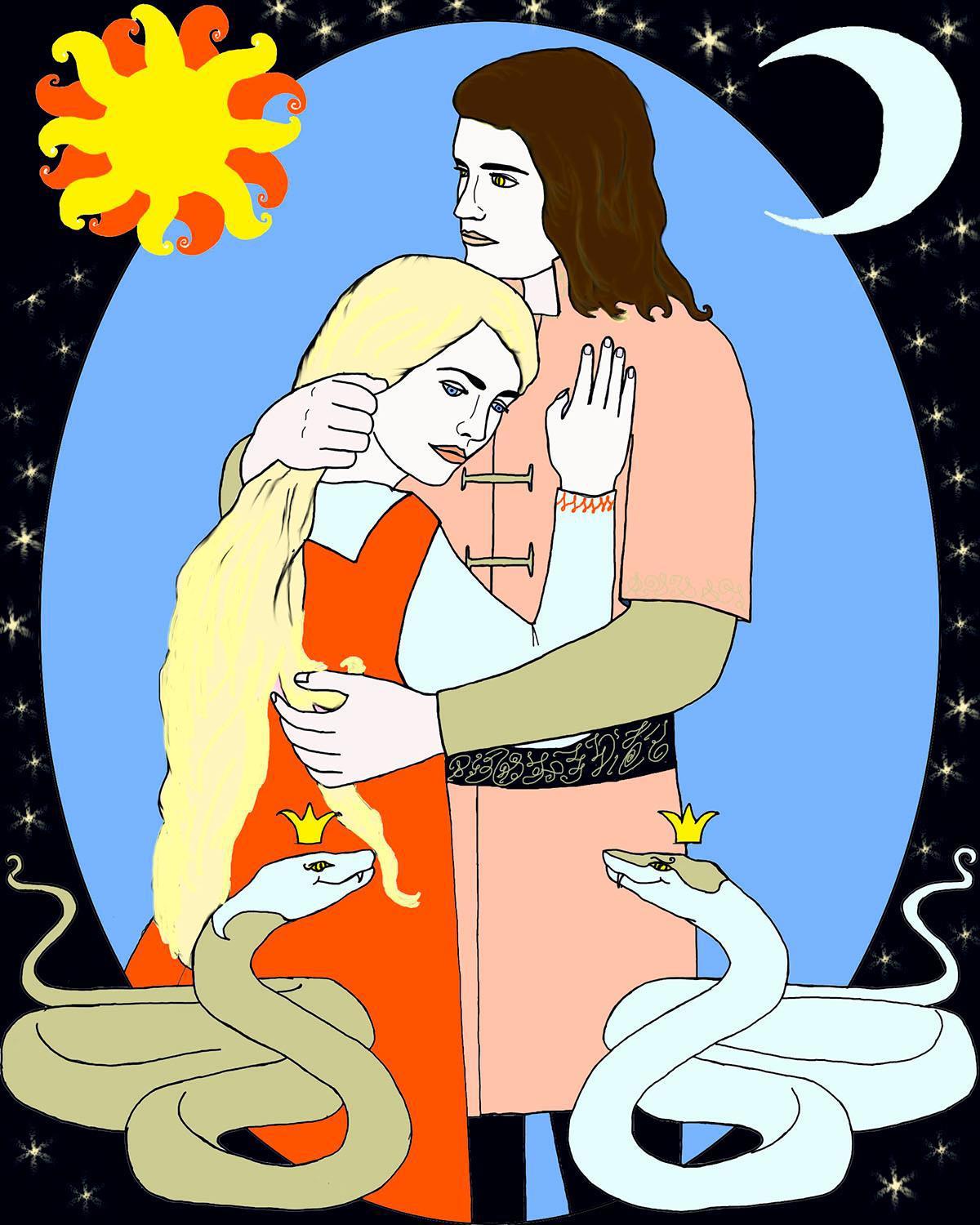 7. Мария Камардина, «Сферотехник. Прикосновение Змея», глава «Цветы и птицы», конкретная сцена в комментарии под катом, внешность героев соответствует обложкам.