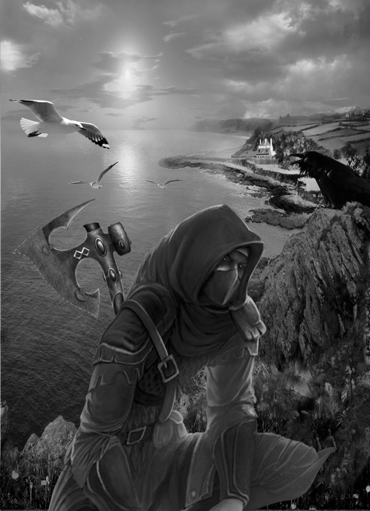 Сокрытое, тайное зло... Человек, который прячет своё лицо, отсылает нас к главе № 5 " Чайка и ворона". Где сам он - тщательно скрытый, но смертельный враг Хальвдана конунга, который завтра отправит его на неминуемую гибель. Иллюмтрация полна тайной атрибутики: вот она, чёрная ворона, прямо над головой злоумышлителя - символ его настоящего состояния и социального статуса, она главенствует. А гордая и независимые чайки - они там в недосягаемой дали, как и отец ненавистника. Именно таким и нужно запомнить мстительного героя, чтобы найти его в остальных частях "Солнце...".