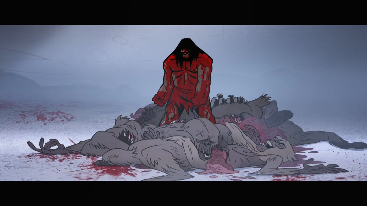 В предвкушении треша, угара и кровищи герой решает потанцевать. Пользуясь тем, что он неотразим как Домогаров, упавший в хлорку (он альбинос),