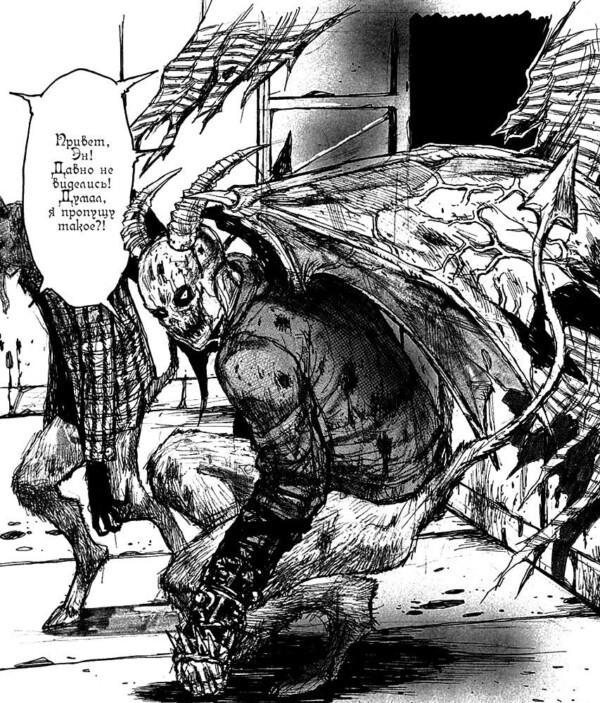 Второе – сатанизм. Дьяволы, создавшие магов ради интересного времяпрепровождения, тусят частенько не только в Аду, но и мире магов. Дюже любят вечеринки, подарки, вкусняшки и игры. Маги, кстати, тоже могут стать Дьяволами. Дьяволы создали магов ради собственного развлечения, я ведь сказал, что игры Дьяволы любят? В мире Дорохедоро Дьяволы не являются чем-то за пределом понимания, они активно участвуют в жизни Дыры и мира магов, даже иногда вмешиваются в сюжет, считая, что помогают. Со своей колокольни, конечно. Не стоит думать, будто манга пропагандирует сатанизм в чистом виде – нет. Можно сказать, что здесь существование Дьяволов – объяснение откуда взялись маги и для эстетики, а она, надо сказать прослеживается во всём и создаёт особенную атмосферу.