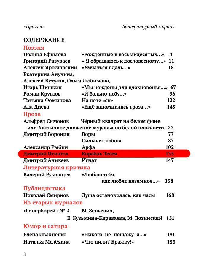 Автор: Дмитрий Алексеевич ИгнатовС удовольствием обнаружил себя в 21-м июльском номере литературного журнала «Причал». Хотя из-за недостатка финансирования издание уже долгие годы выходит только в электронном формате, но «Причал», тем не менее, является официальным рупором Союза Писателей России в моём родном городе Ярославле. Поэтому эта (для меня 7-я по счёту) публикация стала особенно приятной.