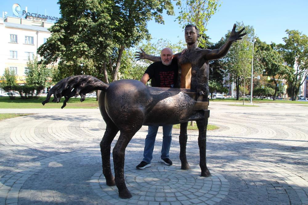 Но он ужасен. Либо слишком аллегоричен, отчего я его не воспринимаю. Улыбку гагаринскую сразу опознал мой коллега, а уже потом мы это услышали от скульптора. По мне, улыбка бессмысленная, дебильная. Дыра эта в груди, развёрнутый на 180 градусов корпус. многим ещё покоя не дают половые признаки, но у меня их нет на фото. А у кентавра они есть.