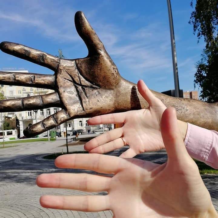 На ладонях у него линии точно такие же, как у скульптора. Ну, вы видите линию денег, да?) (живые руки на фото скульптору не принадлежат)