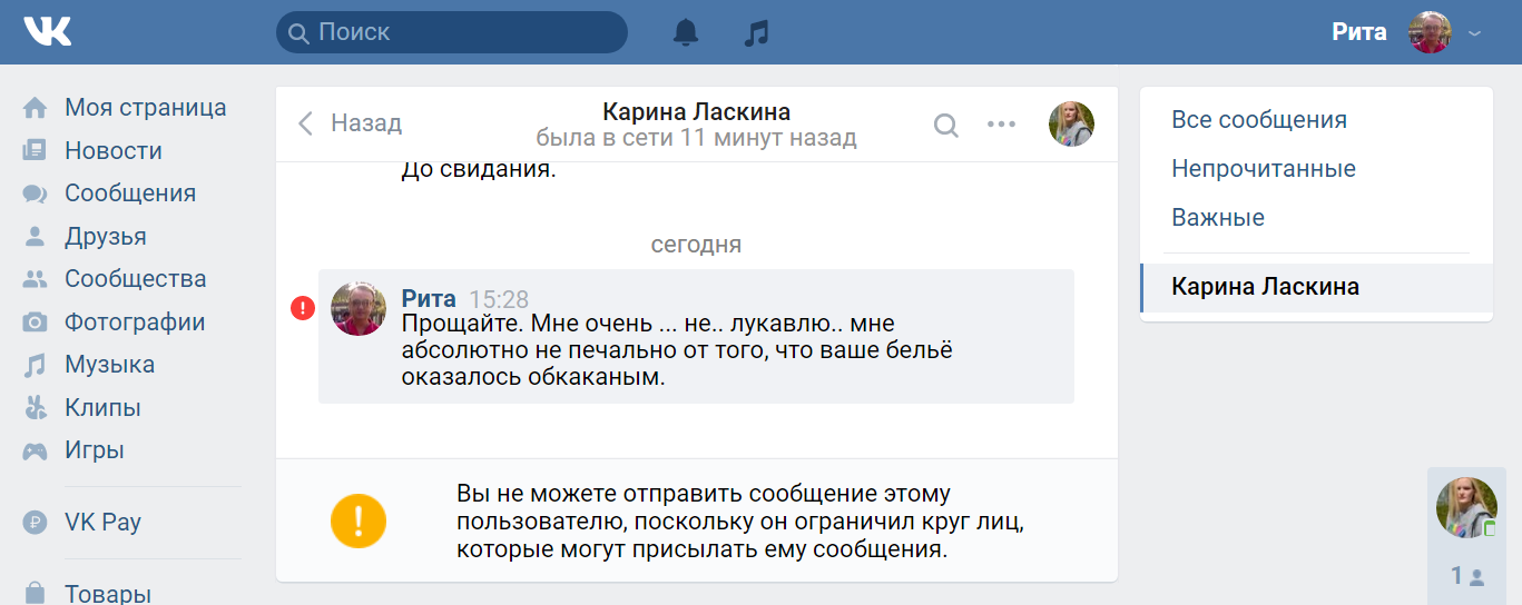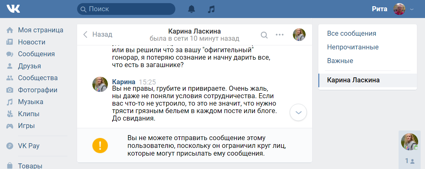Вот такой содержательный диалог с дамой, которая вознамерилась поучить меня правилам общения в инете и указать, что мне надоТЬ удалить, а что можно и оставить, сегодня имел место быть...