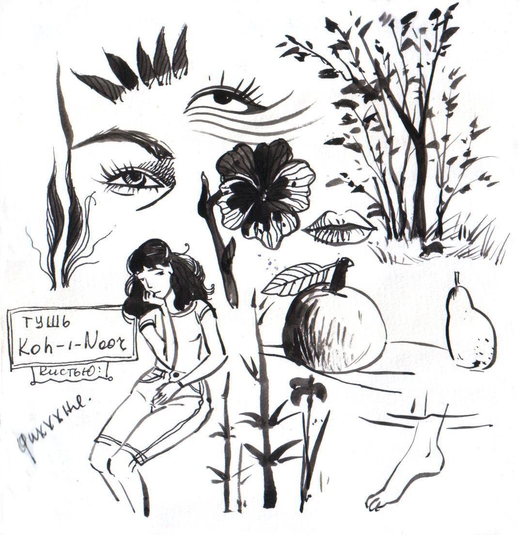 Надолго, на пол-годика, наверное, забросила идею общения с тушью. А потом моя загребущая душа увидела рисование перьевыми ручками. У народа всё больше Kaweko и Lamia, но первое дешевле, поэтому я купила ее. Оказалось, что в ручках используется не тушь, а чернила. Тушь в такие ручки заправлять и нельзя, забьются. Поэтому я поначалу порасстраивалась, что лайн под акварель не сделать. А потом начала распробывать. Удобненько, прикольненько!