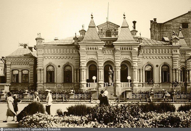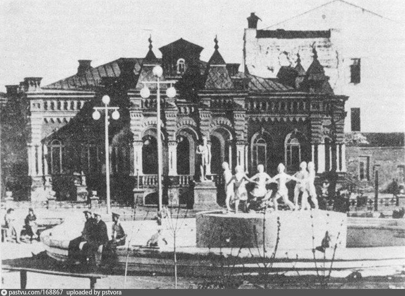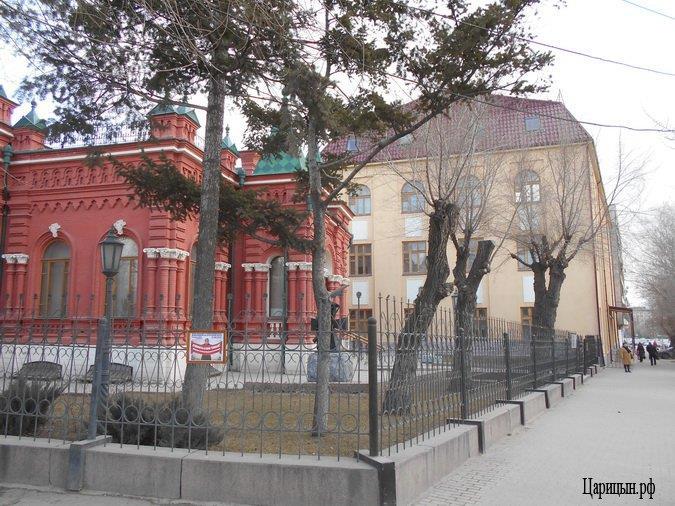 Мемориально-исторический музей (красное здание) на улице Гоголя (одной из немногих в центре Волгограда, сохранивших дореволюционное название - была переименована из Елизаветинской в 1909 году - к столетию со дня смерти великого писателя) сейчас полностью посвящён событиям Первой Мировой и гражданской войн, ранее (до постройки Музея-Панорамы) он был Музеем Обороны Сталинграда, в довоенные годы Музеем Обороны Красного Царицына, а изначально - купеческим особняком. Одна из фотографий, кстати, достоверно показывает и внешний вид, и подлинное место расположения знаменитого Сталинградского фонтана "Бармалей" (или "Крокодил"). Годы, я думаю, указывать не стоит - понятно и так: