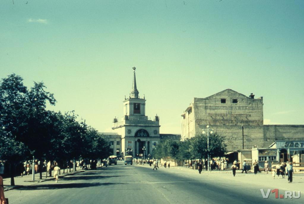 Что же это за здание? Сейчас в нём "Ростелеком" и в послевоенное время оно всегда принадлежало электросвязи: был там когда-то междугородный переговорный пункт (до постройки здания на Мира 16), был и ИВЦ связи. А что же было в нём раньше? Изначально это была гостиница, которая не выдержала конкуренции и была выставлена на торги. Выкупили её известные царицынские купцы братья Серебряковы и устроили в ней... гвоздильный завод. Да-да! Такой круглосуточный грохот в самом центре города, рядом с жилыми домами и гостиницами. Судов было много - особенно со стороны купчихи Репниковой, которая была вынуждена съехать из собственного дома (ныне Мемориально-исторического музея) из-за шума. Существует даже неподтверждённая легенда о том, что один из братьев Серебряковых когда-то сватался к ней, получил отказ и решил таким образом отомстить... Но это только легенда... На самом же деле все эти разбирательства были прекращены с началом Первой Мировой, когда продукция завода стала остро необходимой. После революции завод был, конечно, национализирован и назывался "Красная застава", был достаточно серьёзно повреждён во время бомбардировки 23 августа 1942 года и последующих боёв (такое фото тоже имеется), но после войны здание его ( как и Музей Обороны - дом Репниковой) было восстановлено и передано телефонному узлу.