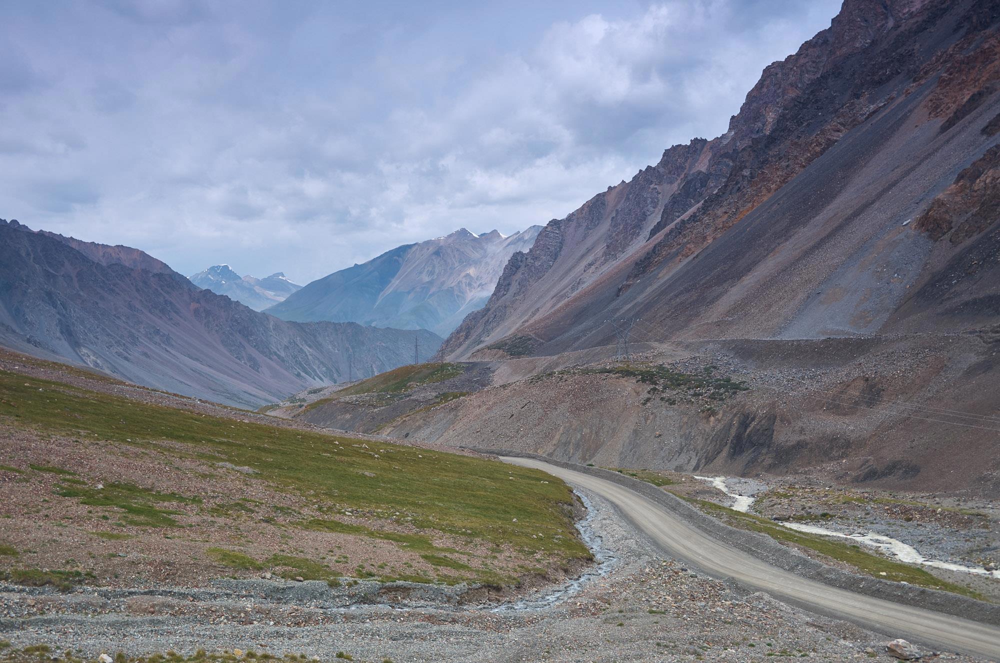 Уже в долине нам стали часто попадаться машины-цистерны, затем мы замечаем, что они наполняются водой многочисленных здесь ручьев. Оказывается, это машины-поливалки. Они постоянно ездят и поливают дорогу к перевалам, чтобы она не пылила. Да по ней самой и заметно, что за дорожным полотном следят практически каждый день. А все потому, что ведет она к крупнейшему в Киргизстане месту добычи золота, на котором работает канадская компания. Отсюда и порядок. А вы думали? Между прочим, этот рудник дает треть всего бюджета республики.