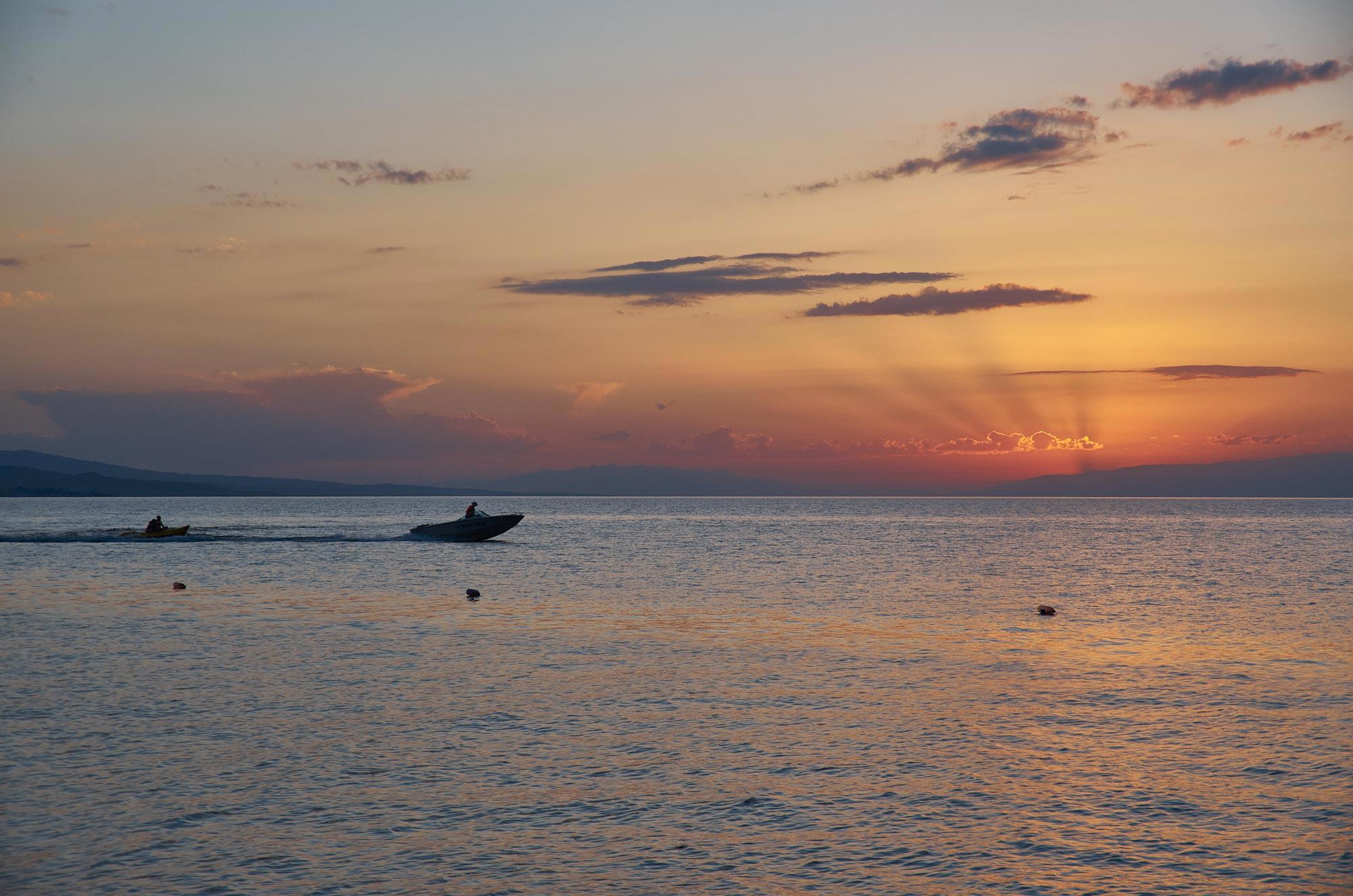 Фото самого запыленного поселка и пляжа представляю ниже, и куда без знаменитого горного озера. На поселковом пляже аренда зонтиков 100 сом в час, или целый день 400. Не дай бог, после обеденного перерыва сядешь под зонтик другого «промоутера», скандал обеспечен. Катают на катере, продают на пляже закусон. Мы, конечно же, ничего там не покупали. Но то и дело слышно – Самса, анфляшу! В самом поселке вдоль дорог несколько торговых павильонов, едальни, есть заправка. Вдоль озера заметны развалины пансионатов советского периода, разруха на южном берегу повсеместна. Как русские отсюда уехали, так все покатилось к чертям. Говорят, что весь пляжный отдых на северной части озера, но там не был, ничего не скажу. Плюс юга – боле теплая горьковатая на вкус водичка. Хотя она и здесь с утра весьма бодрит!