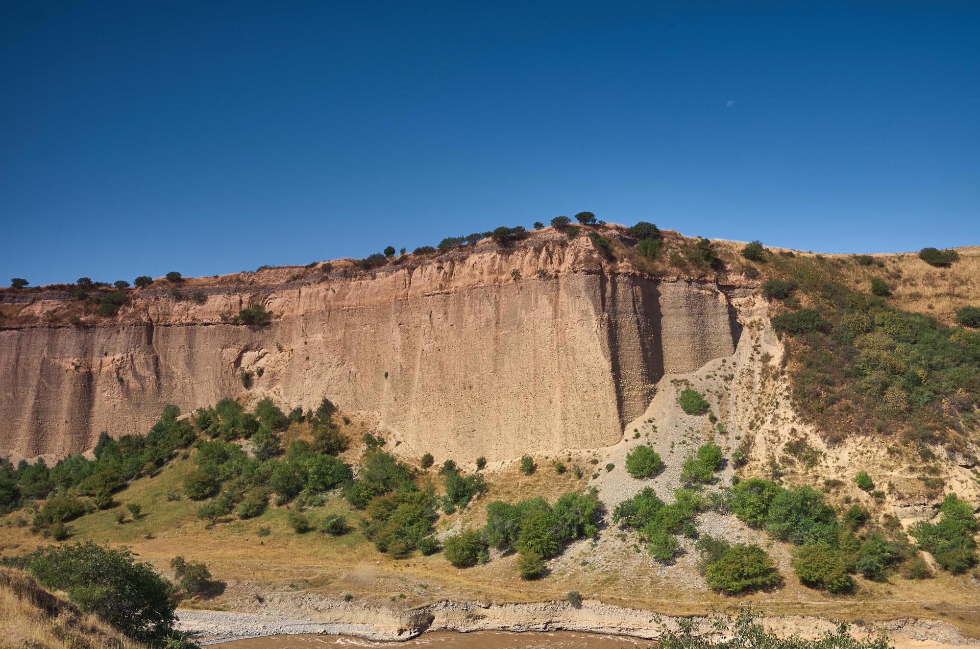 Выдвигаемся из поселка, переезжаем через реку Нарын по мосту и вскоре к своему удивлению выкатываем на асфальтовую дорогу. Асфальт, пусть и плохонький, но асфальт! Нас окружают все те скалистые стены, как будто вырубленные неведомым резцом. Если бы не река, то на этом плоскогорье была полная сушь.