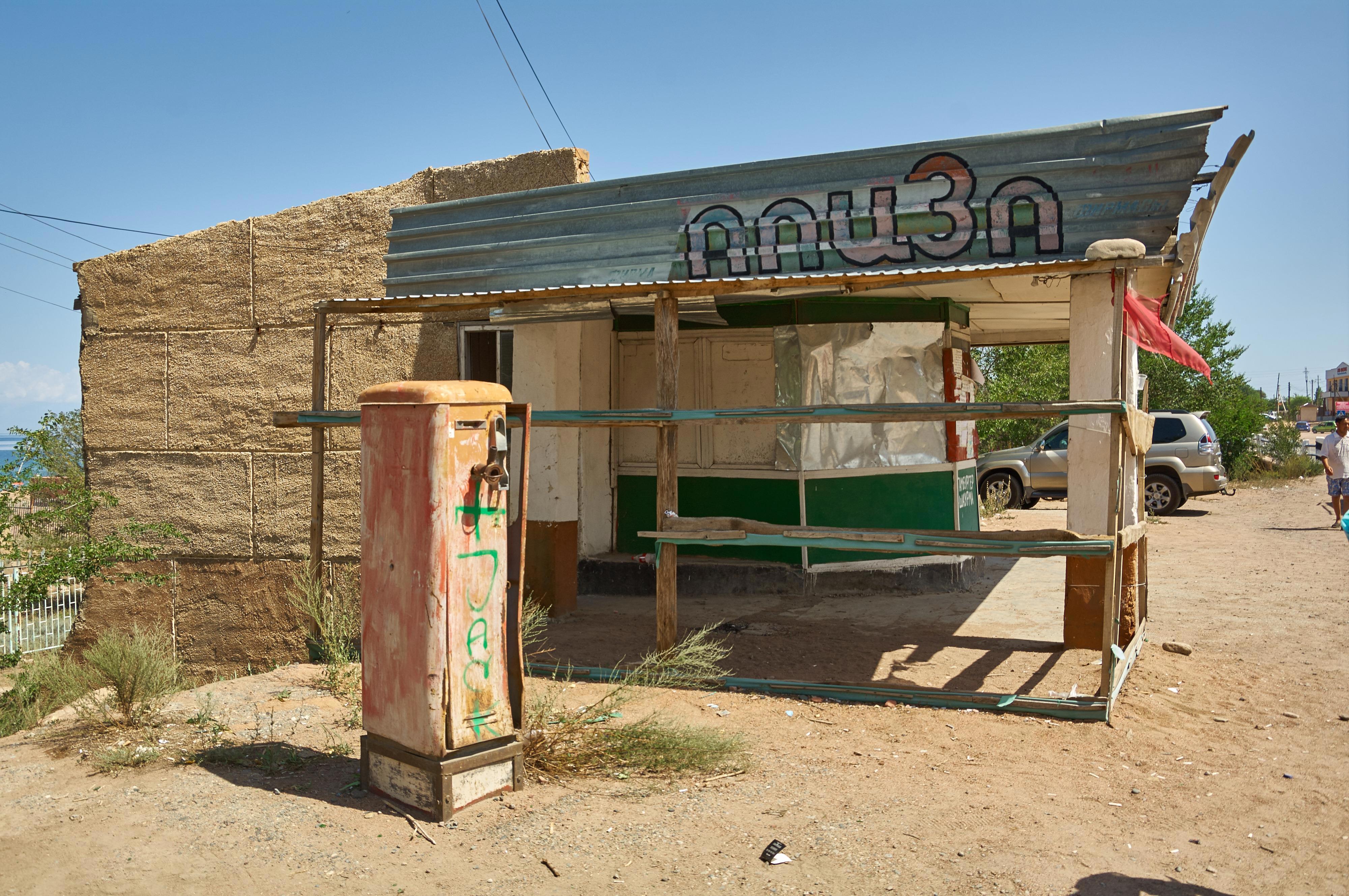 А у нас на пути большой райцентр и перекресток многих дорог Кочкор. Здесь мы снова заправляемся, благо выбор заправок имеется, находим работающий банкомат и делаем забег по магазинам. Рекомендую затариться всем необходимым именно здесь, вдоль южного берега Иссык-Куля с торговлей и банкоматами как-то не очень. В Кочкоре мы купили вкуснейший горный мед, и не дорого. Коньяк, кстати, тоже)) Местные сорта, особенно семизвездочный очень даже, скажу вам, неплохи, особливо под арбуз. "Есть ли жизнь на Марсе?"