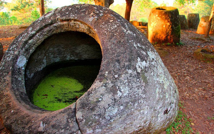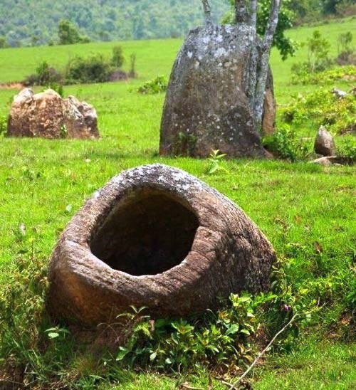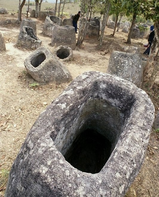 В общем-то, когда дело касается американцев, то это – нормально, поэтому я не про них, а про саму зону обстрела… необычная она. Именно там, в провинции Сиангкхуанг, находится Долина Кувшинов. Название возникло из-за того, что здесь есть места, где группами и по одному лежат и стоят очень древние каменные ёмкости размерами от 0,5 до 3 метров высотой. Тяжёлые они – вес самых больших достигает 6-ти тонн.